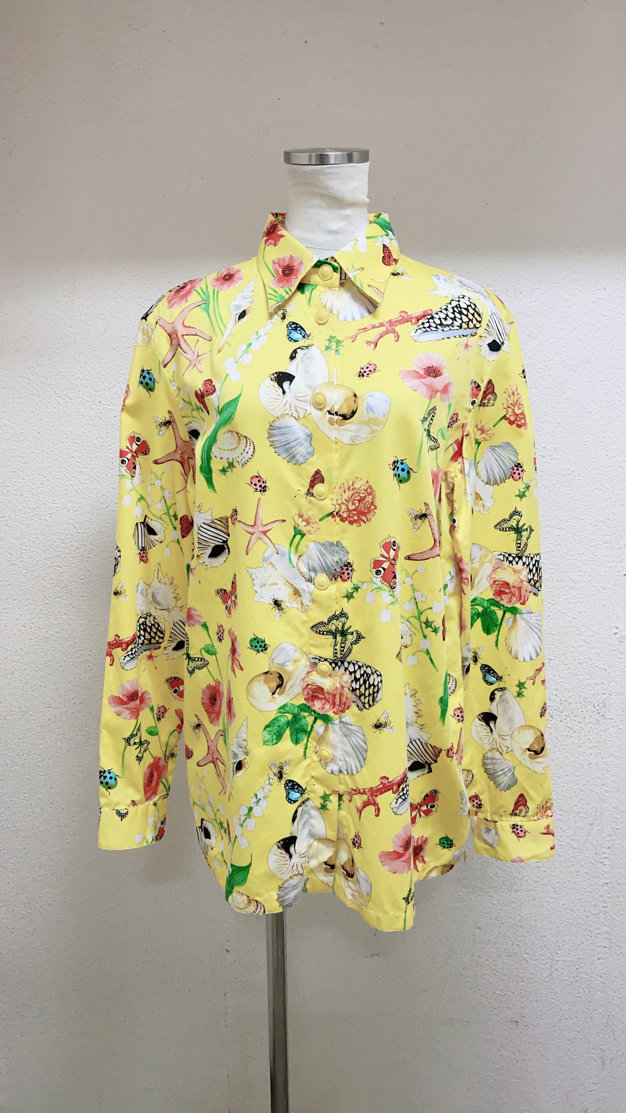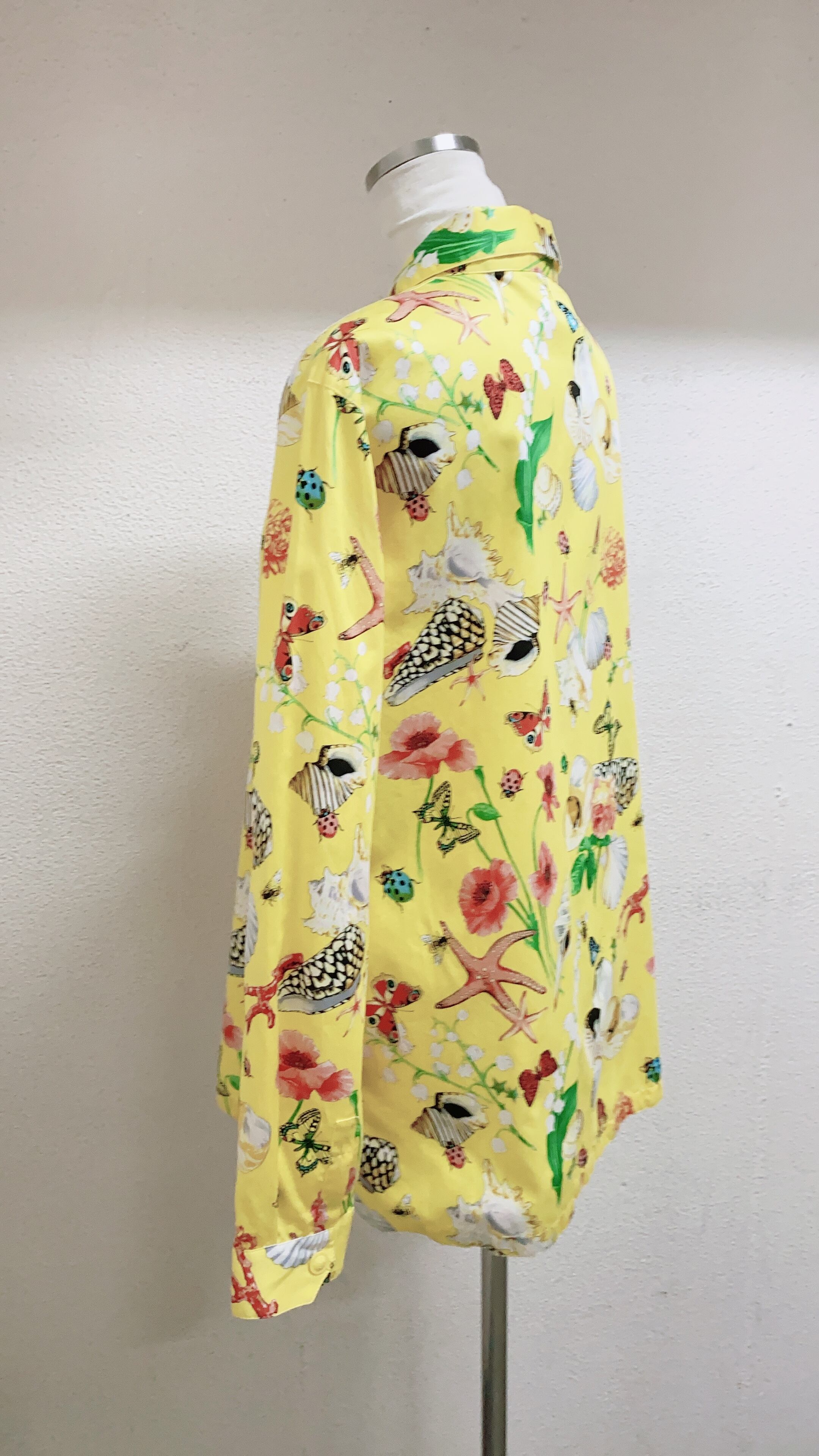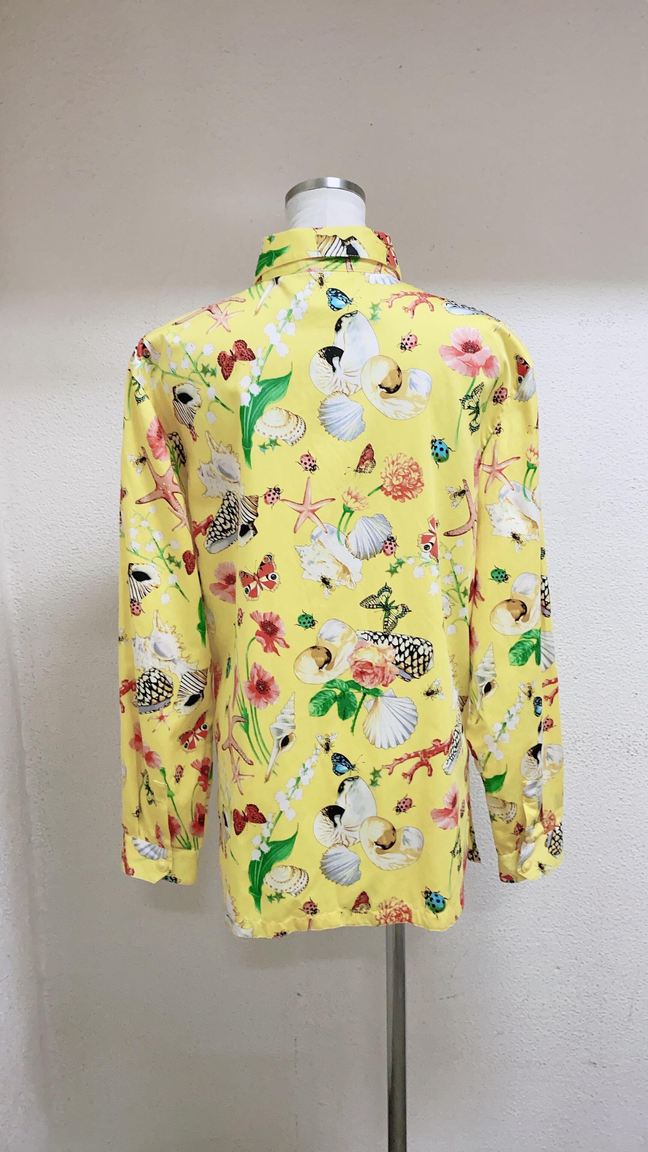 ヴェルサーチの長袖シャツです。黄色地に蝶々柄、花柄が施されたデザインです。