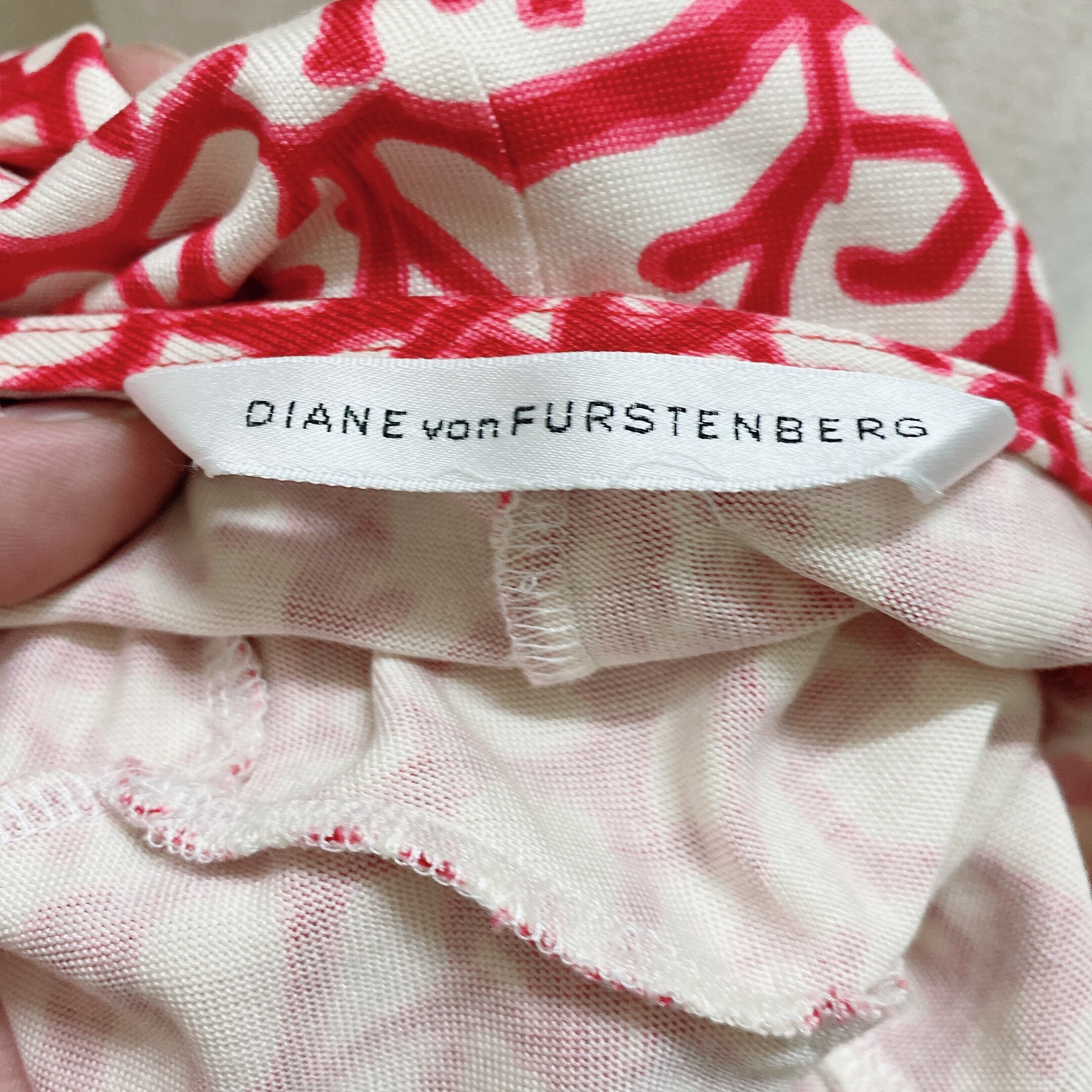ダイアンフォンファステンバーグ 半袖ワンピース 赤ピンク白色 DIANE von FURSTENBERG