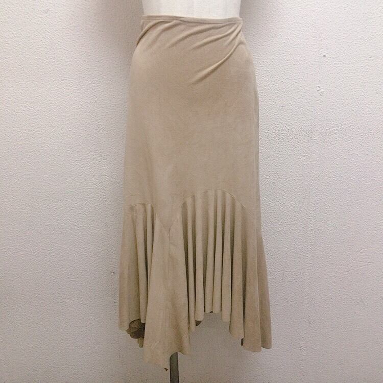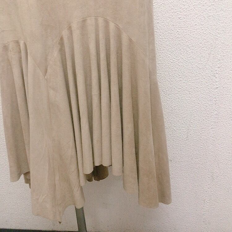 usedのロングスカートです。色はベージュです。スエード風の素材です。