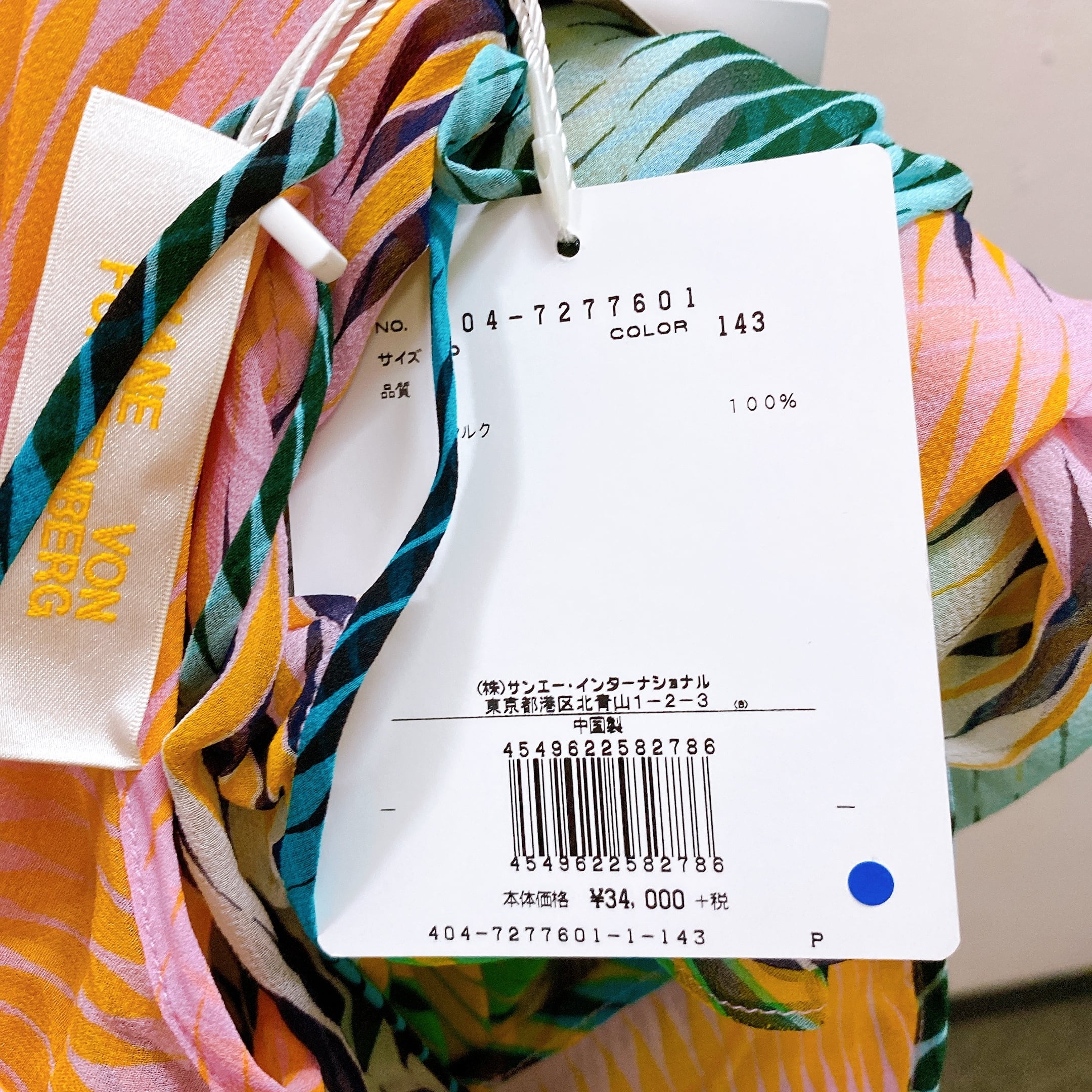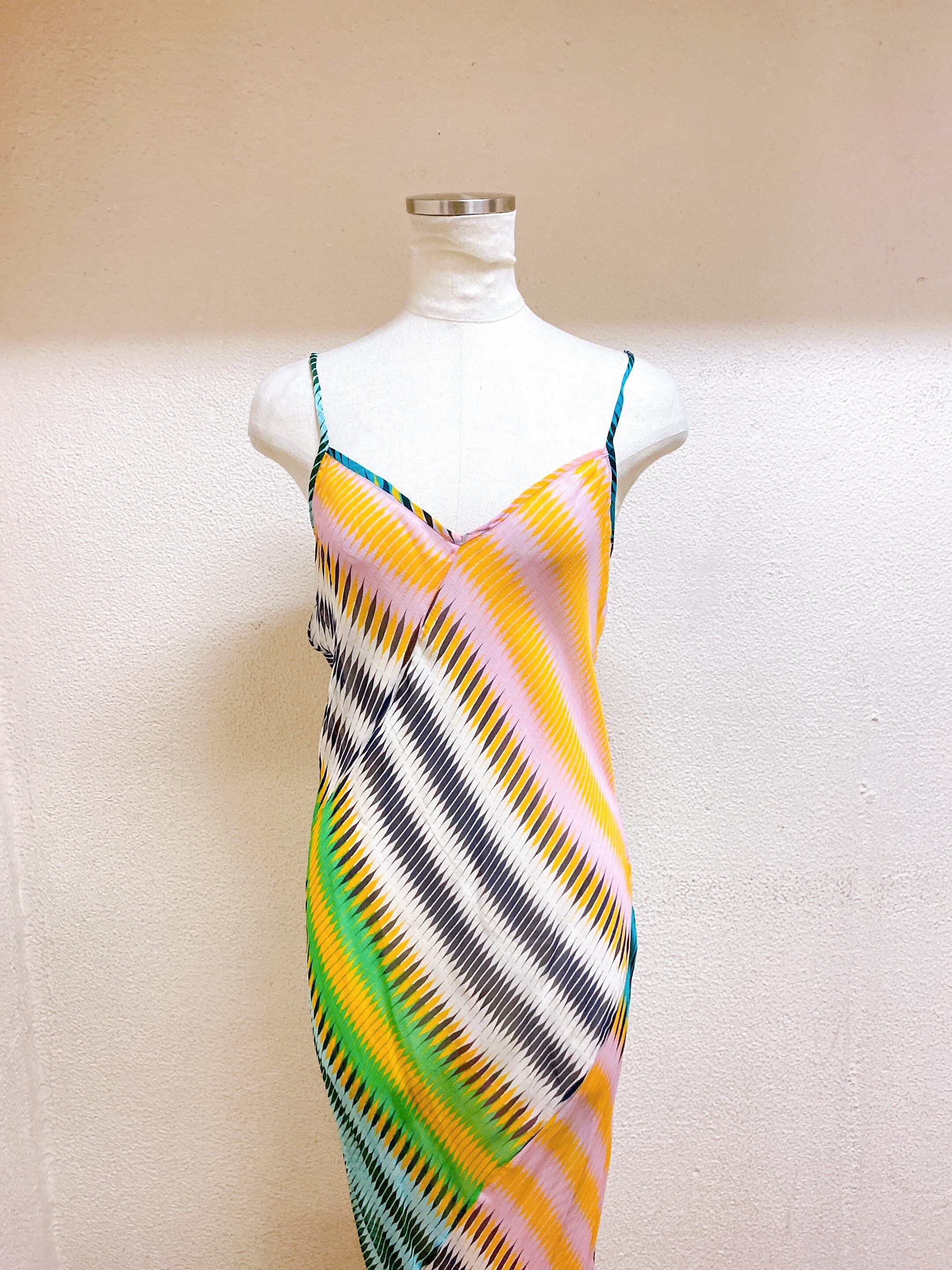 ダイアンフォンファステンバーグ ノースリーブワンピース 白黒黄緑ピンク色 シルク ロング丈 DIANE VON FUSTENBERG 未使用品 美品