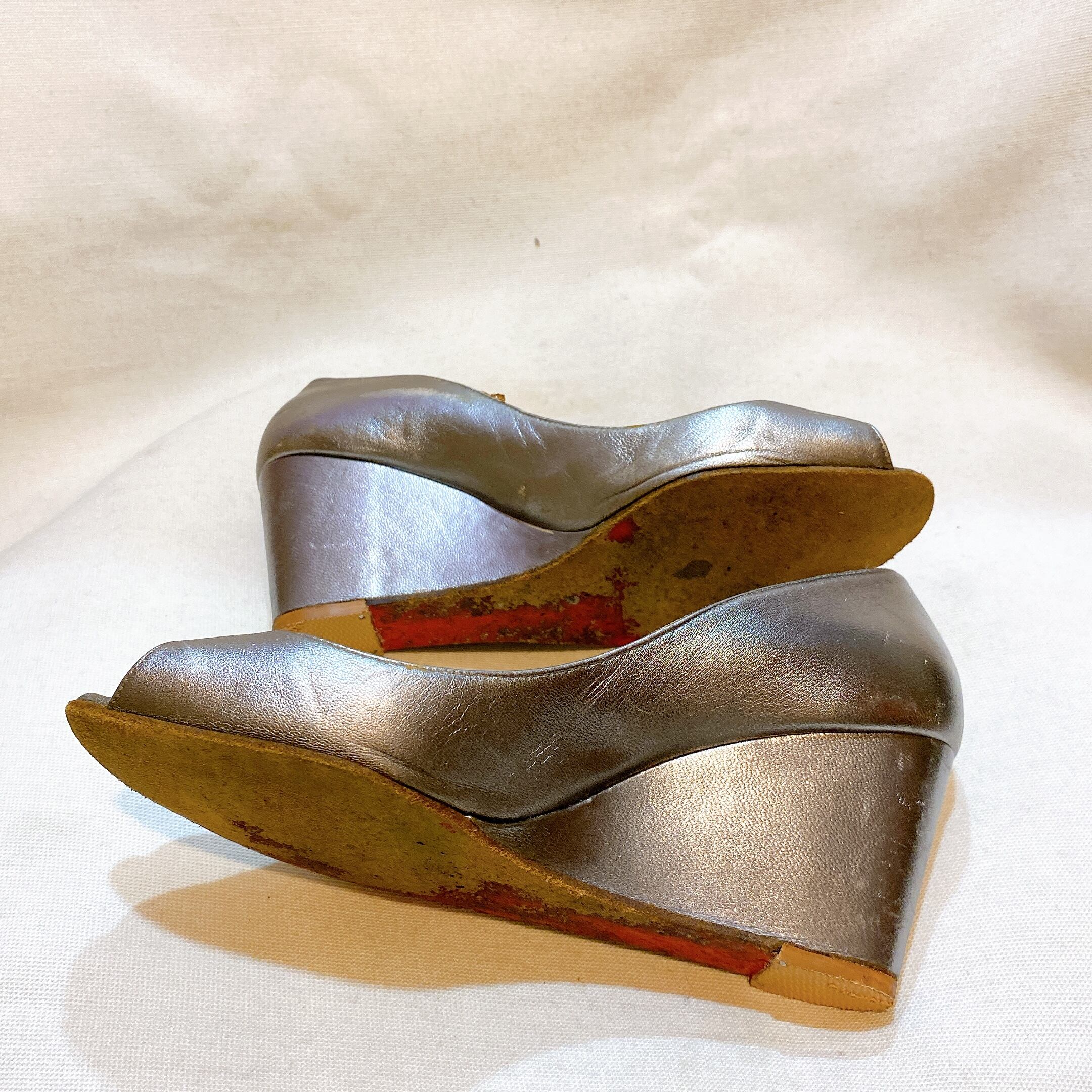 ルブタン パンプス シルバー レザー ウェッジソール Christian Louboutin