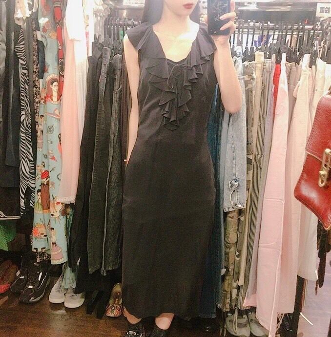 ドルチェ&ガッバーナのノースリーブワンピースです。色は黒です。胸元にフリルの付いたデザインです。