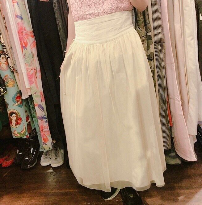 usedのチュールスカートです。色はベージュです。脇にグログランリボンが付いています。