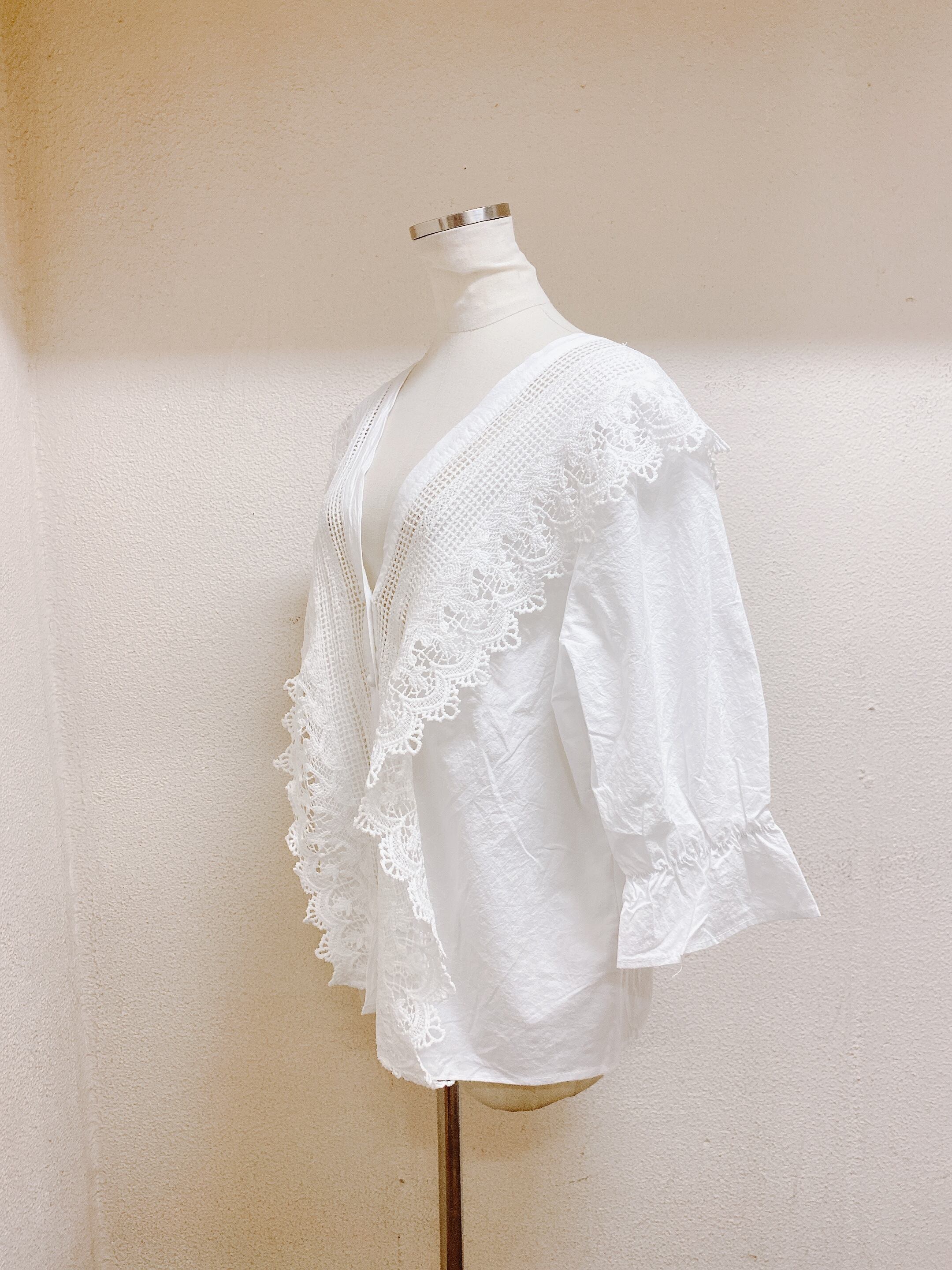 色は白色です。セーラーカラー、レースが施されたデザインです。