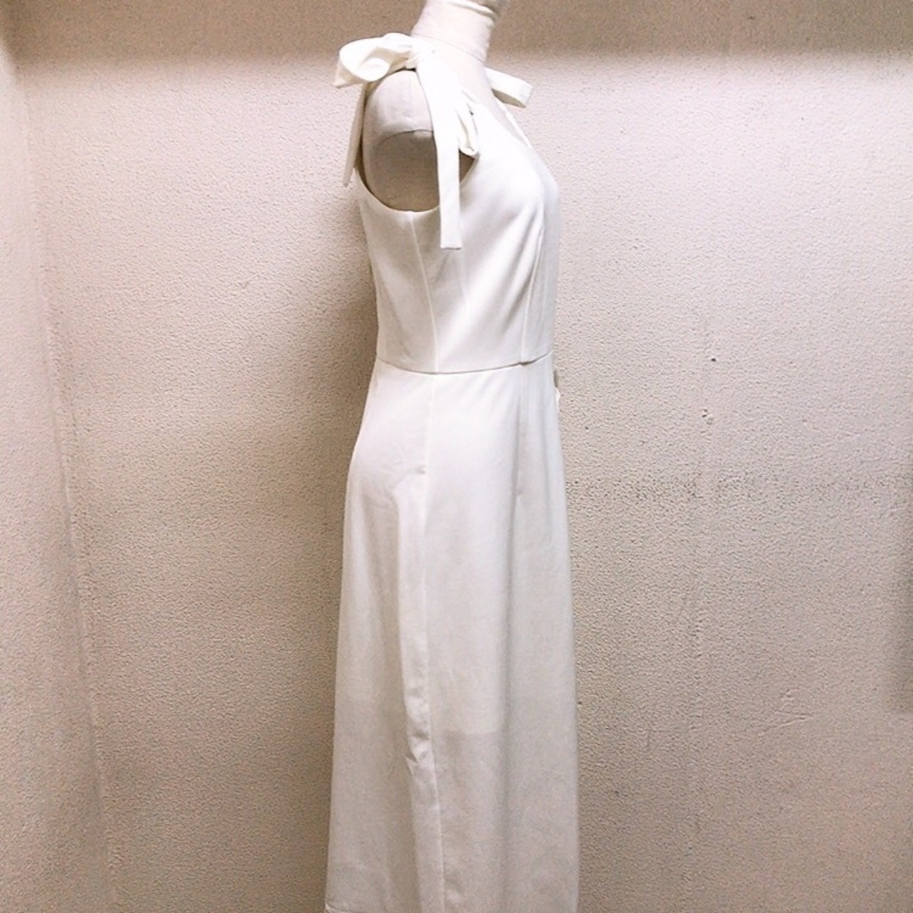 used ノースリーブワンピース 白 ハトメ リボン