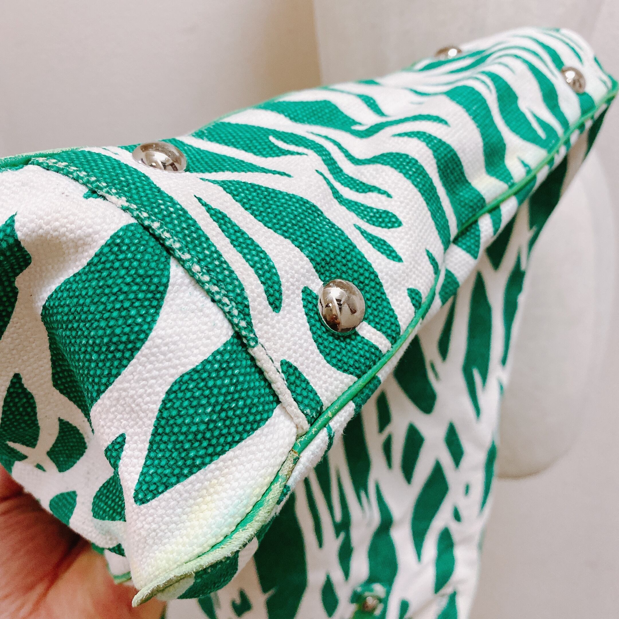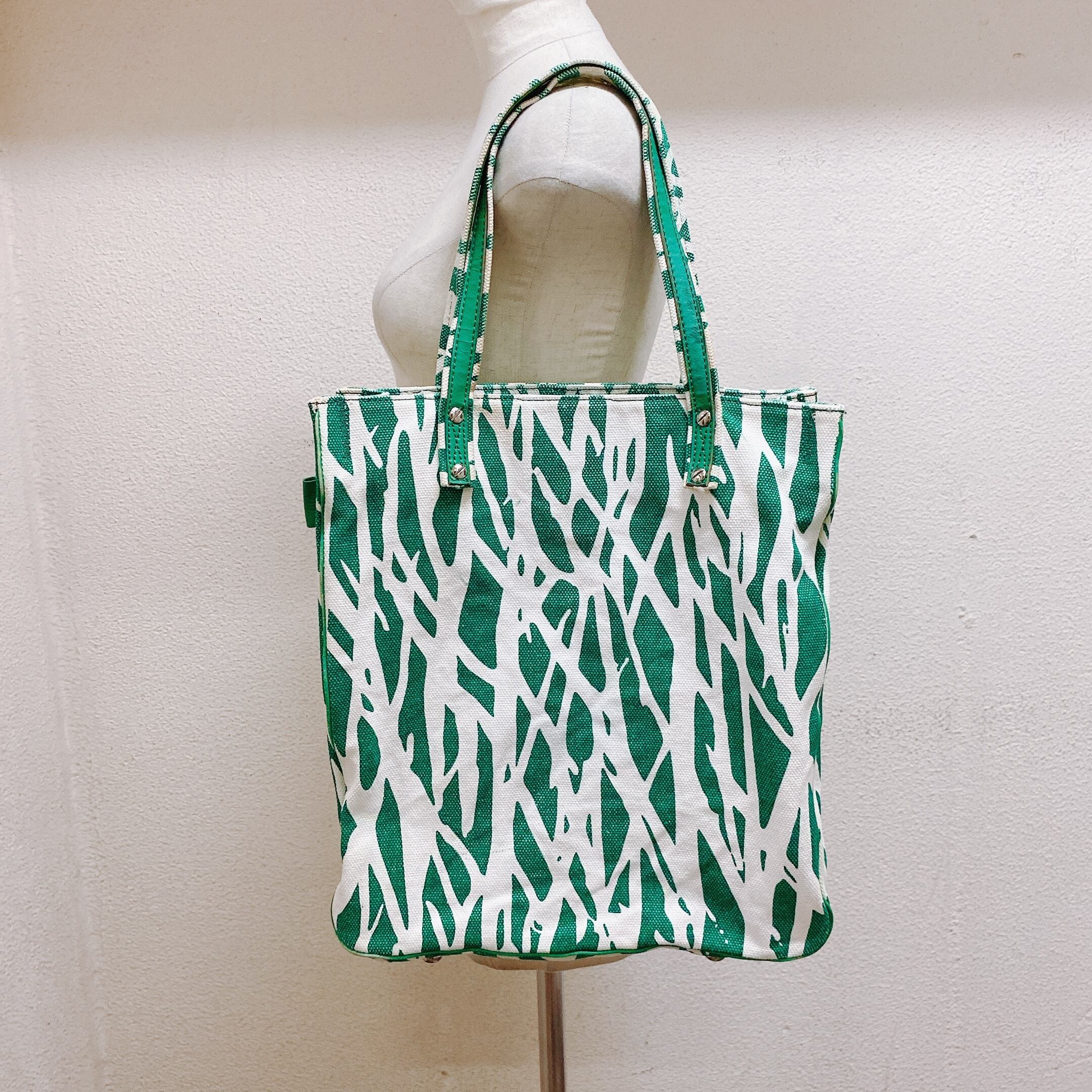 ダイアンフォンファステンバーグ トートバッグ 白緑色 キャンバス 帆布 DIANE VON FUSTENBERG