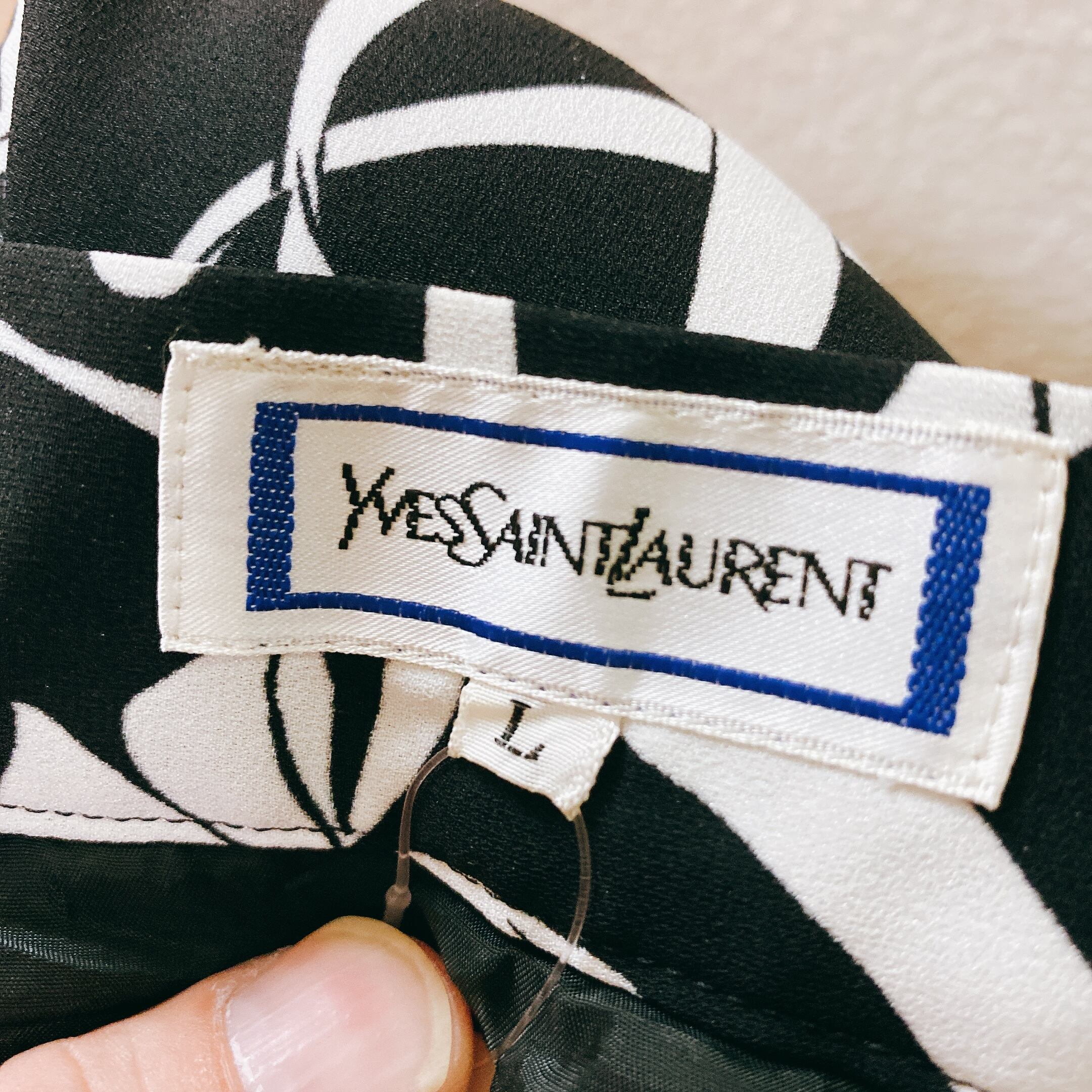 イヴ・サンローラン 巻きスカート 黒色 リボン柄 YVES SAINT LAURENT ysl