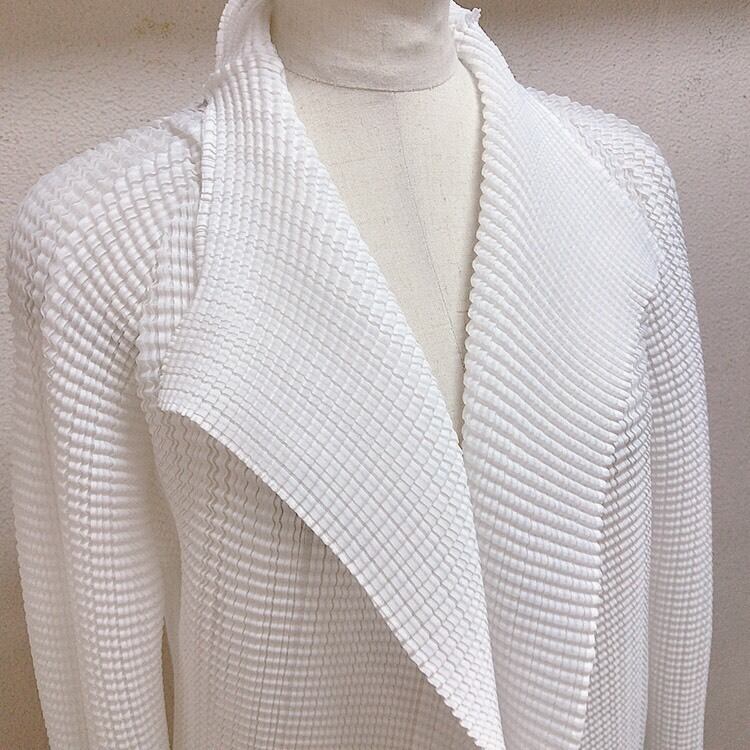 イッセイミヤケのプリーツカーディガンです。色は白です。