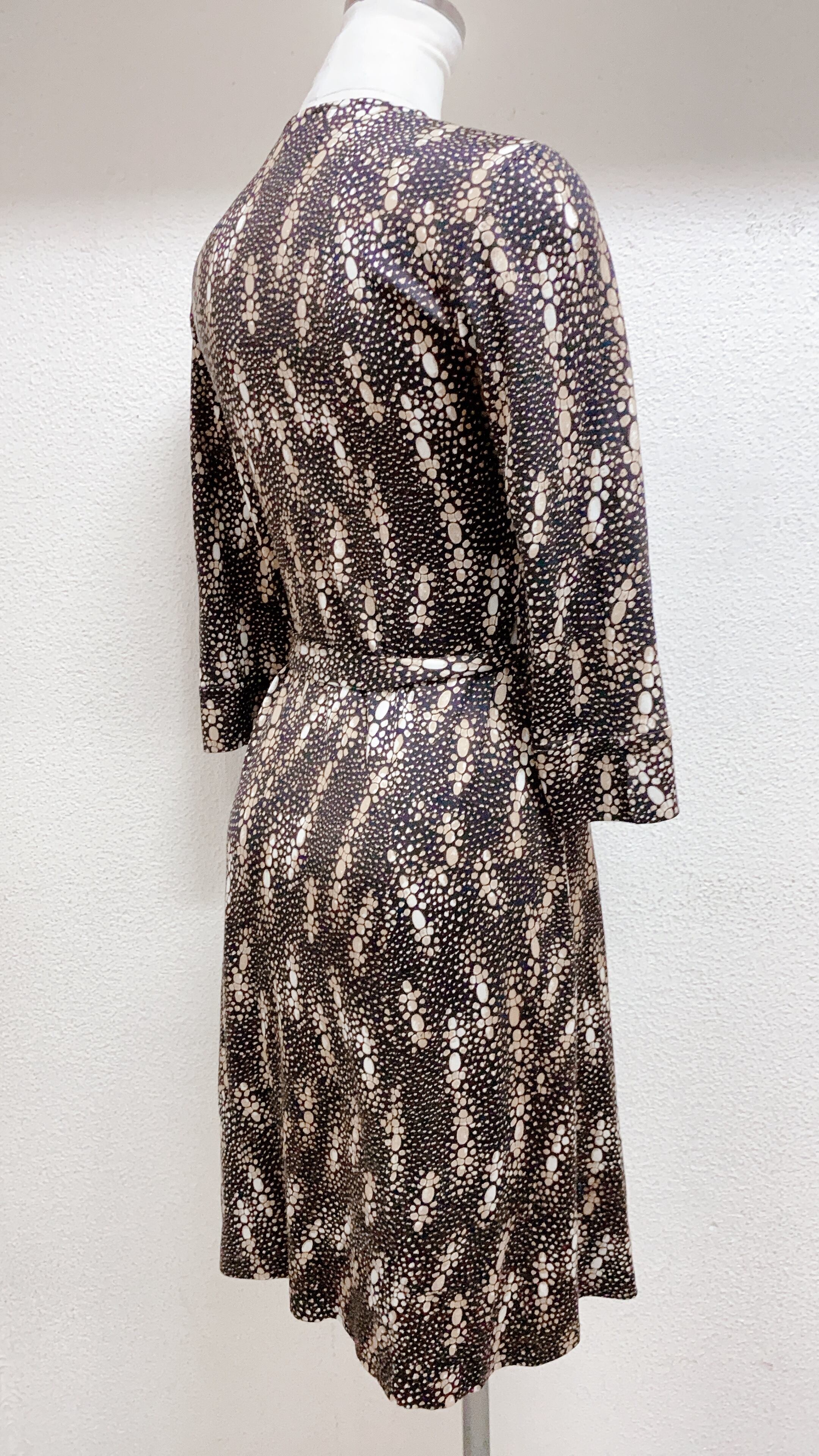 ダイアンフォンファステンバーグ 長袖ワンピース 黒焦げ茶色 花柄 シルク DIANE von FUSTENBERG