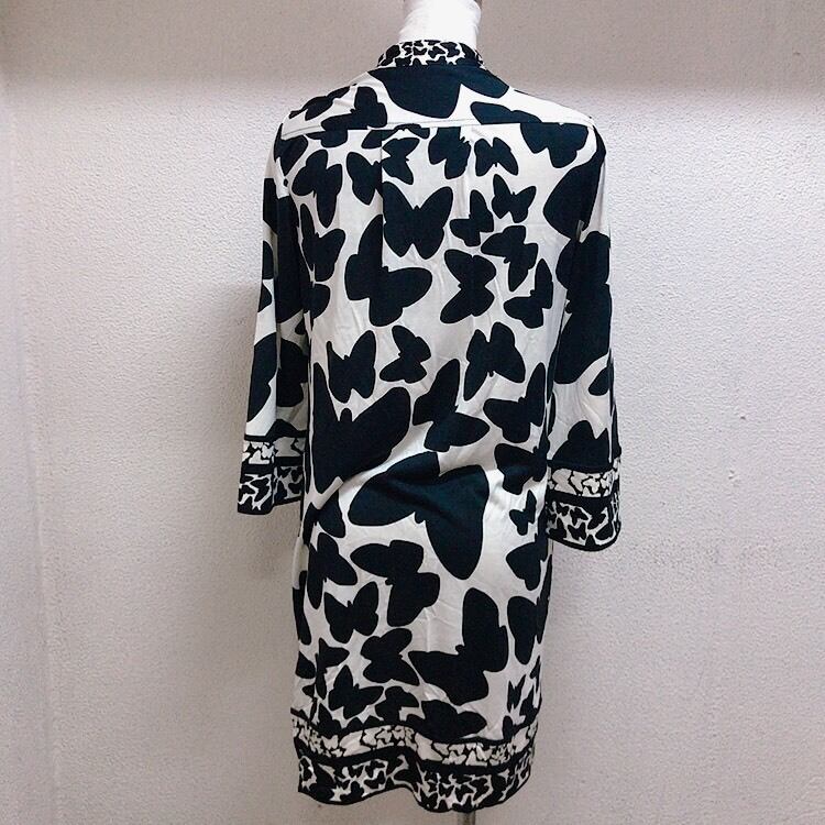 DIANEvonFURSTENBERG 長袖ワンピース 白×黒 蝶々 ダイアンフォンファステンバーグ