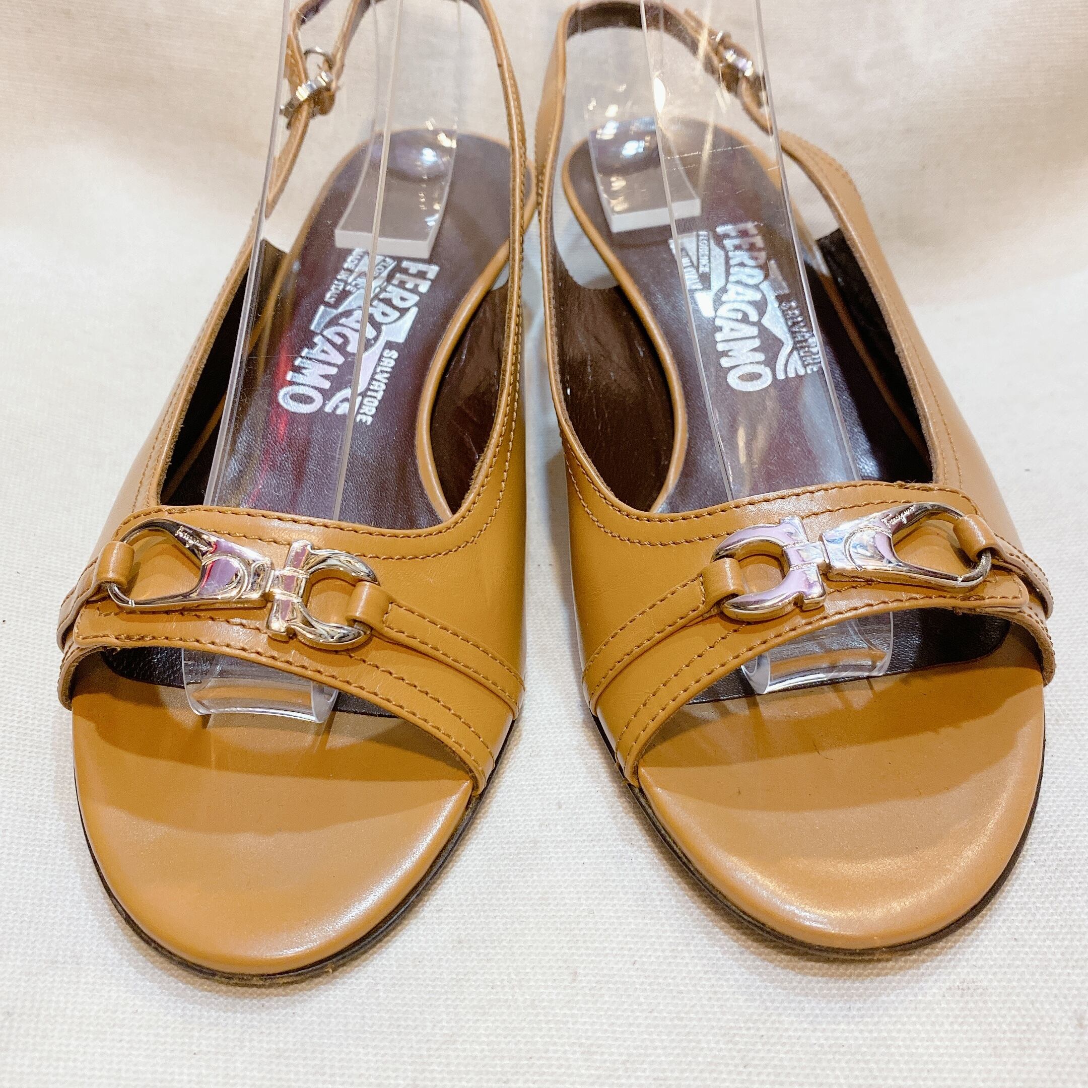 フェラガモ パンプス 茶色 レザー Salvatore Ferragamo