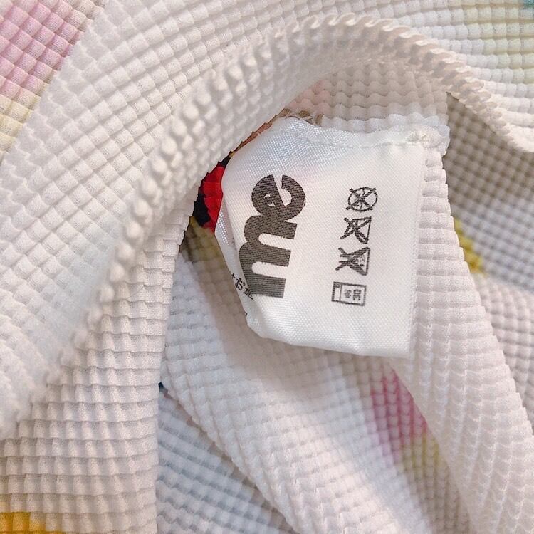 ISSEYMIYAKEme フレンチスリーブトップス 白 幾何柄 イッセイミヤケ