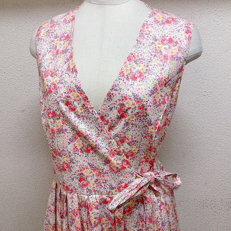 ローラアシュレイのノースリーブワンピースです。色は白×ピンク系の花柄です。