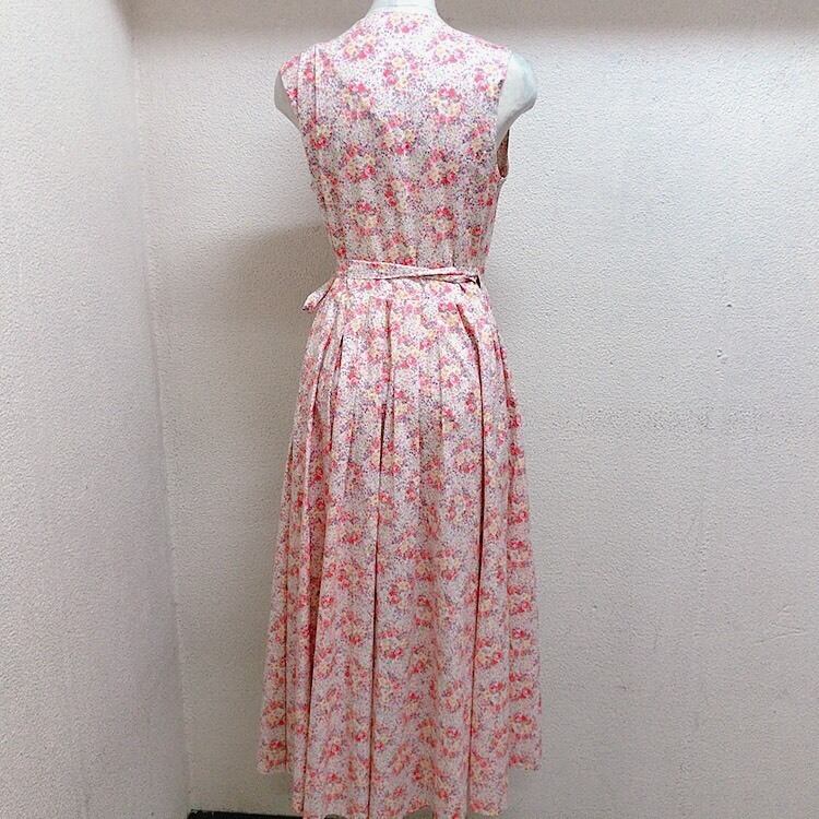 ローラアシュレイ ノースリーブワンピース 白×ピンク 花柄