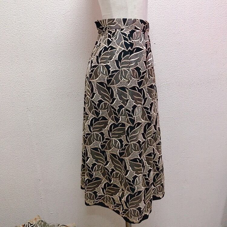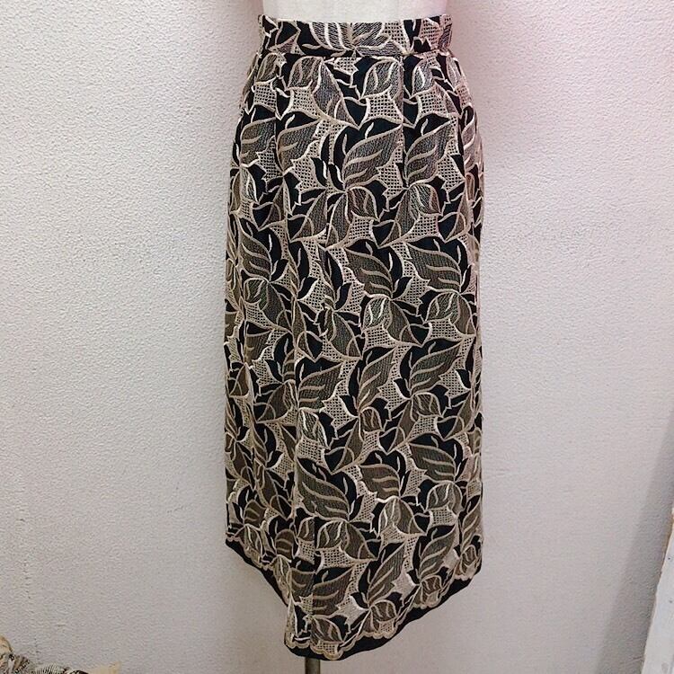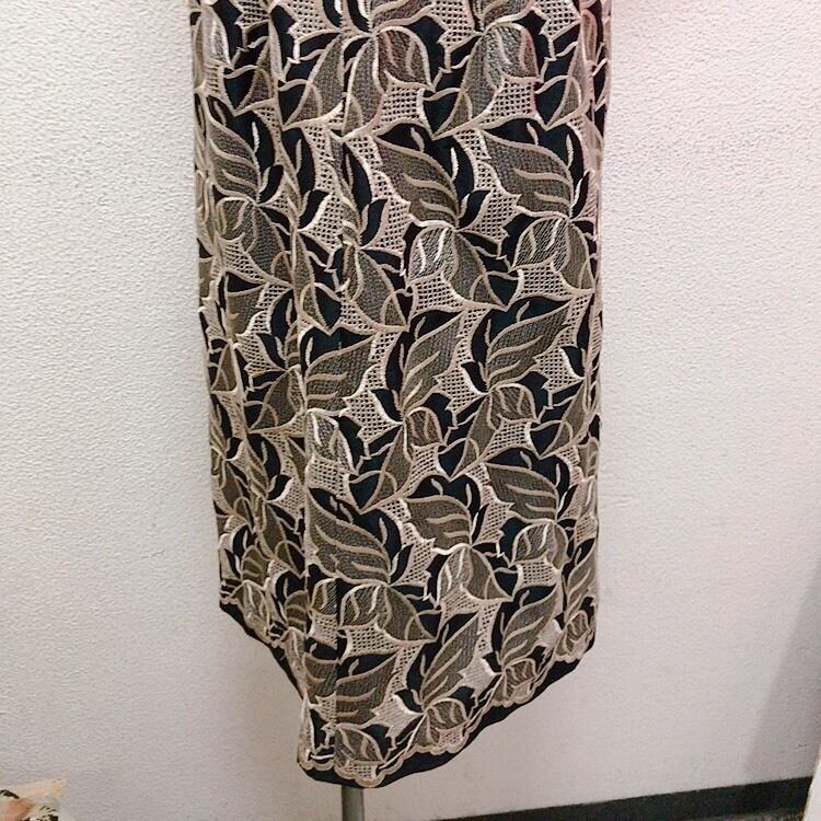 usedのロングスカートです。色は黒地にゴールドの刺繍生地です。