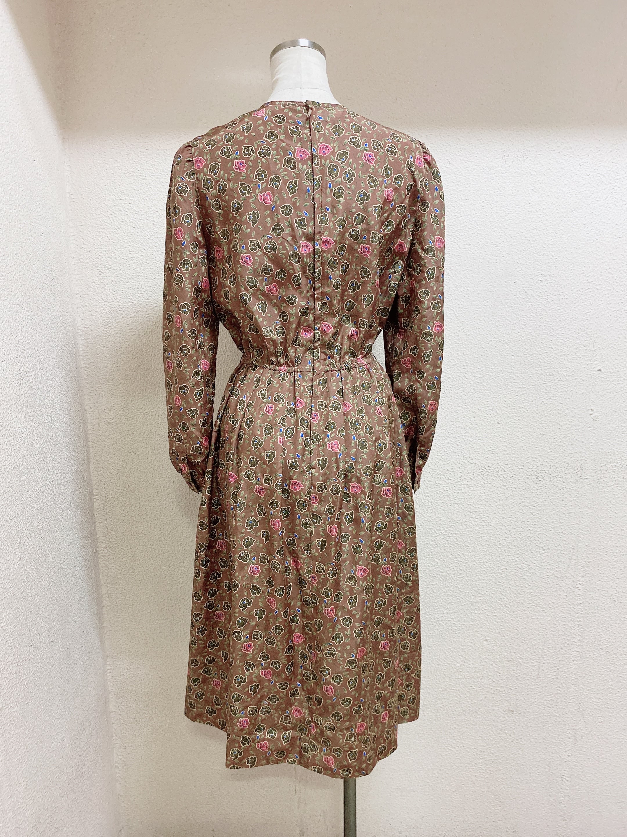 マックスマーラ 長袖ワンピース 焦げ茶色 花柄 ヴィンテージ Max Mara
