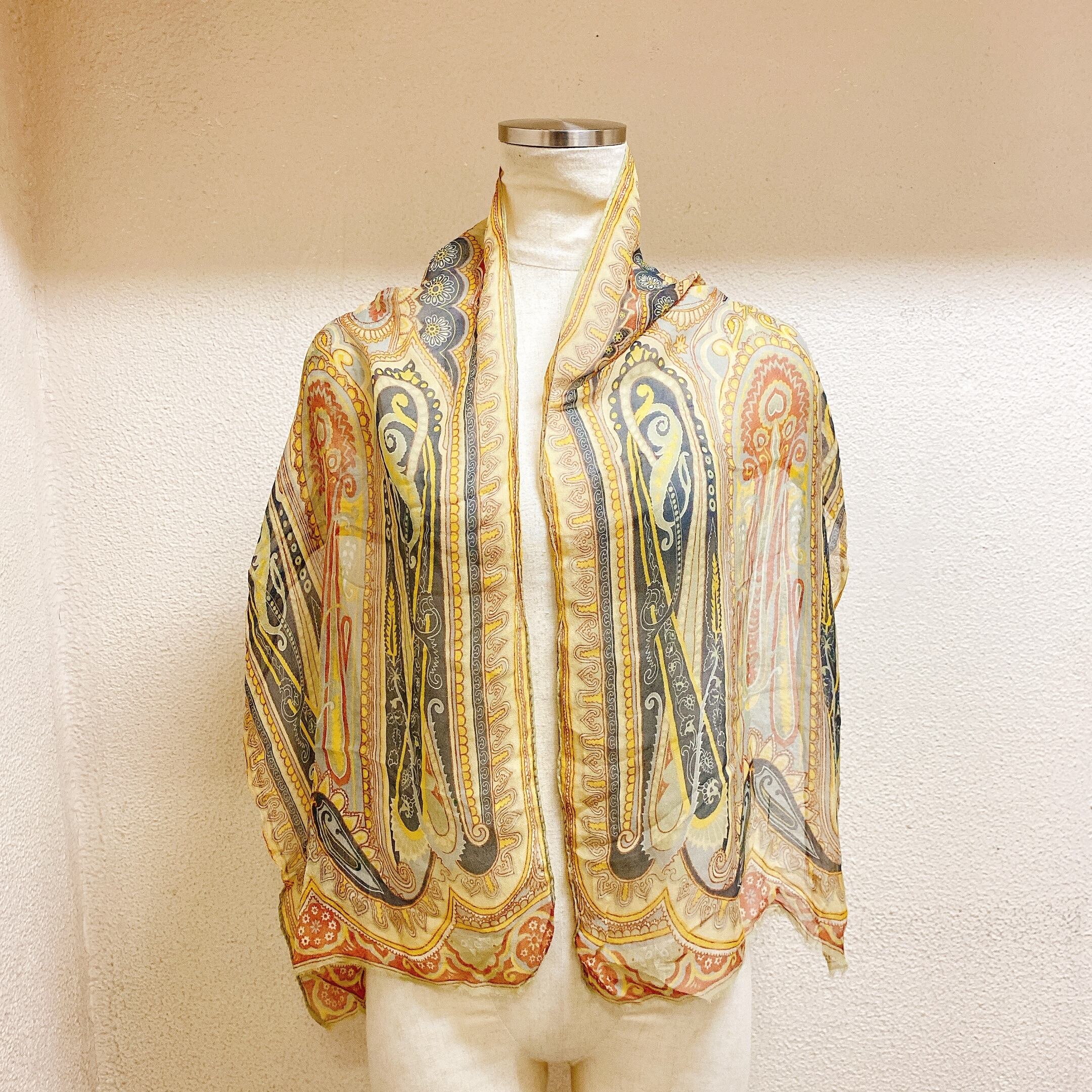 エトロ ストール カーキ色 シルク ペイズリー柄 ETRO
