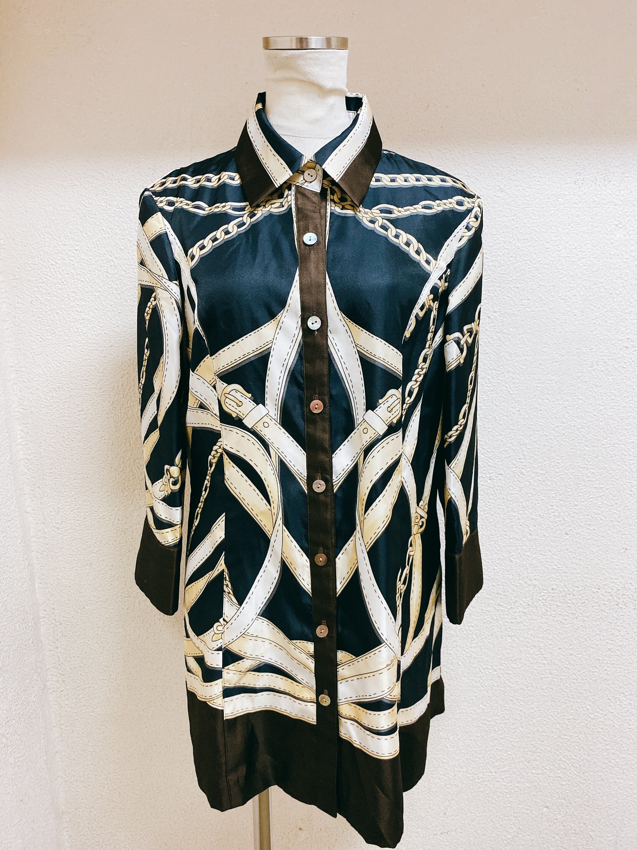 エムズグレイシイ 長袖シャツ 紺色 ベルト柄 M'S GRACY