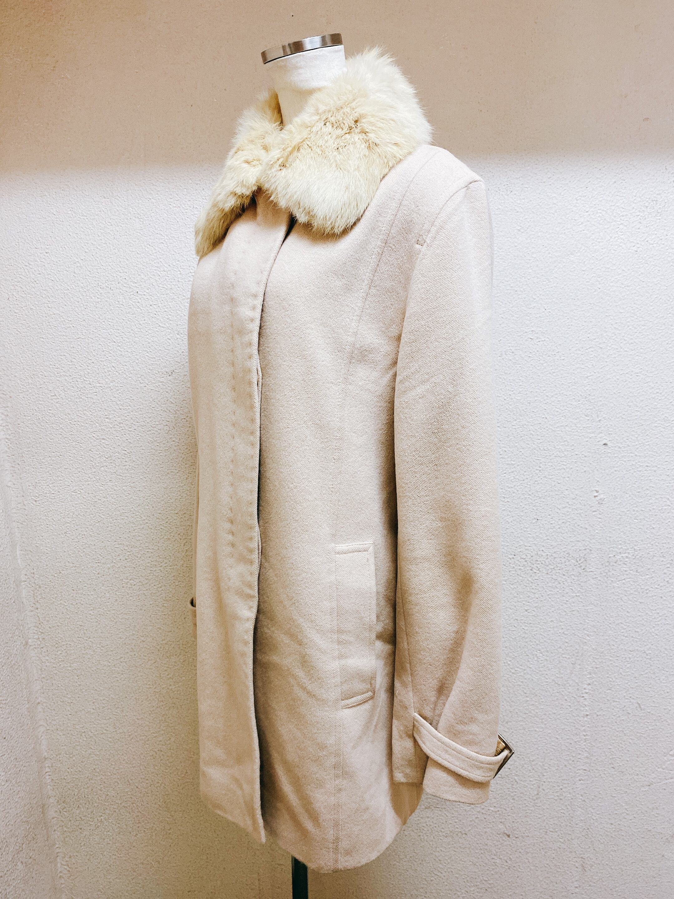 ソニアリキエル ウールコート ベージュ色 アンゴラ混 ファー付 SONIA RYKIEL