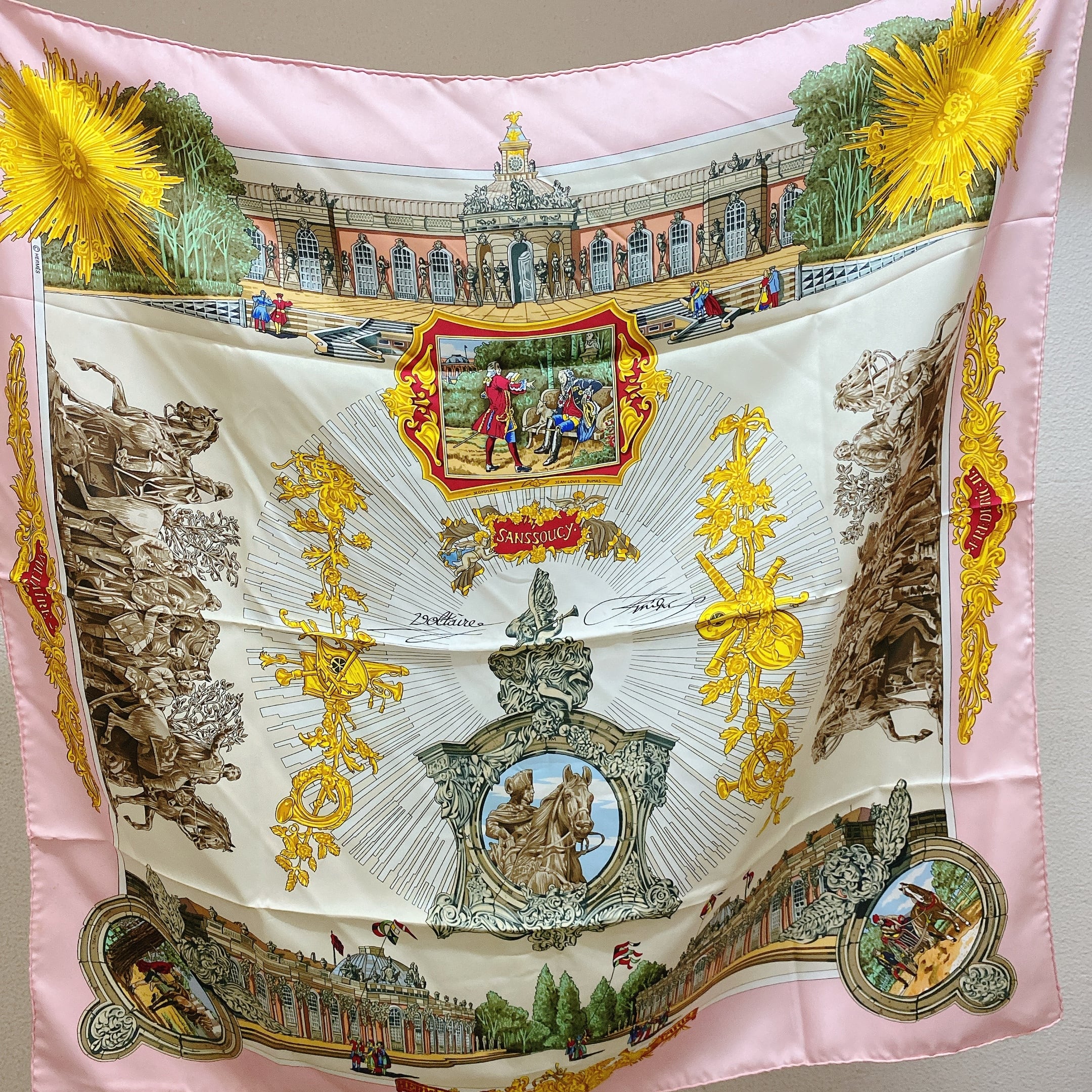 エルメス スカーフ ピンク色 シルク エルメスカレ HERMÈS