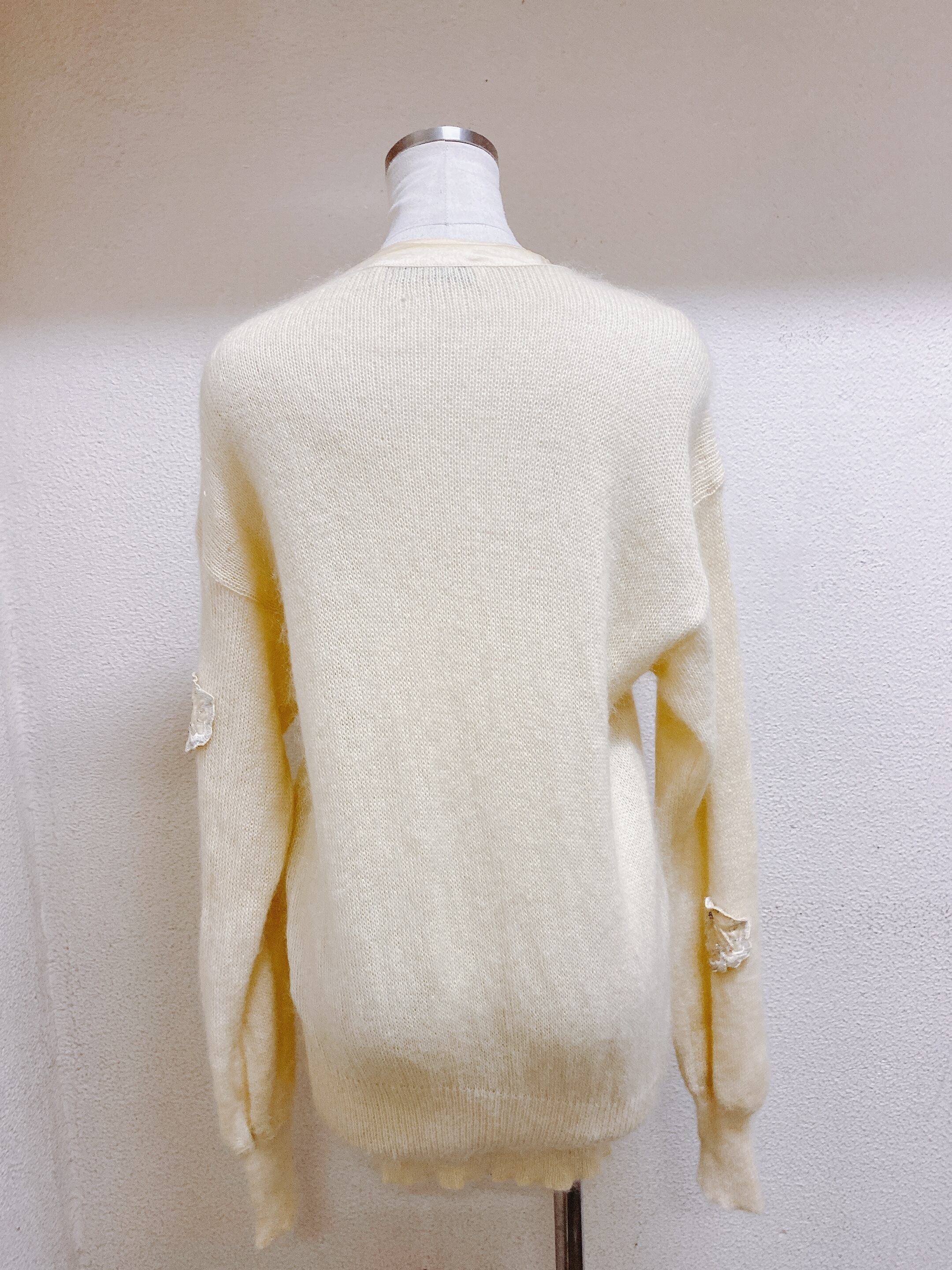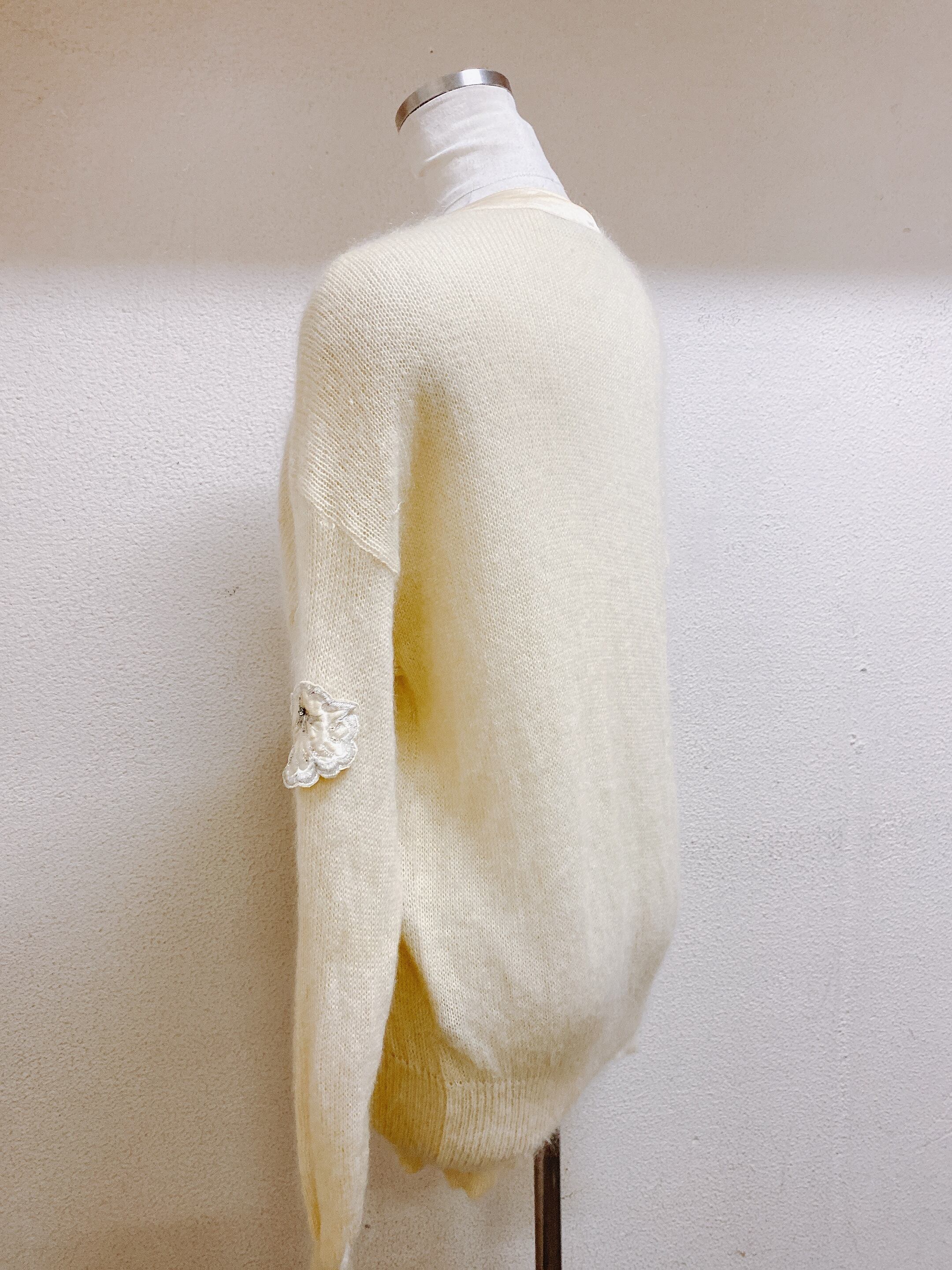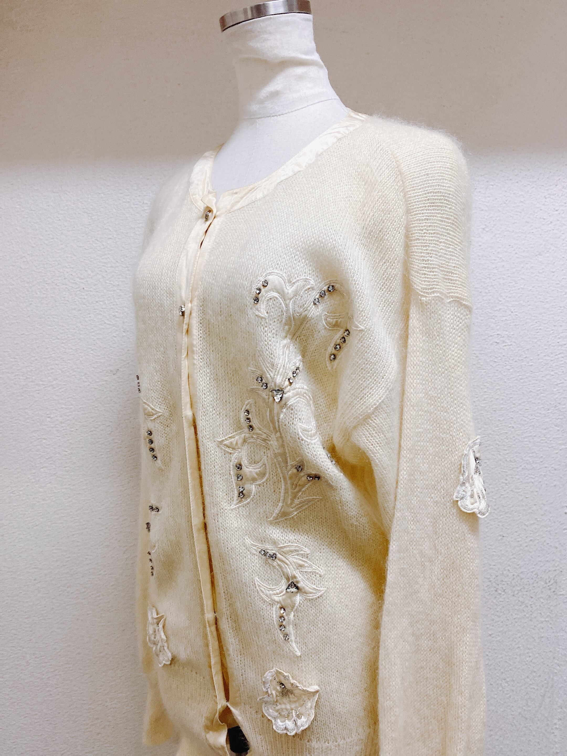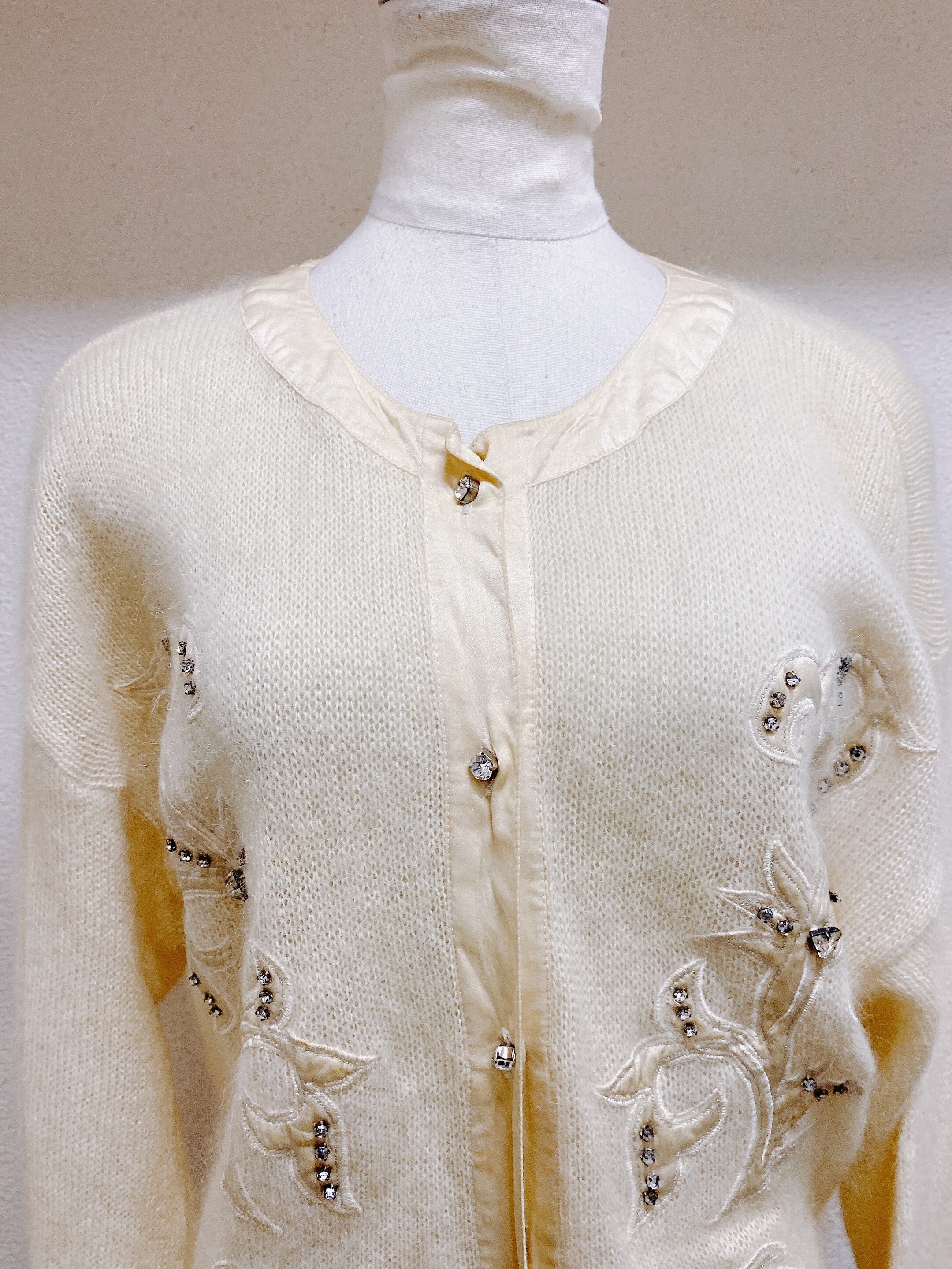 エスカーダ ニットカーディガン 生成色 ラインストーン モヘア ESCADA