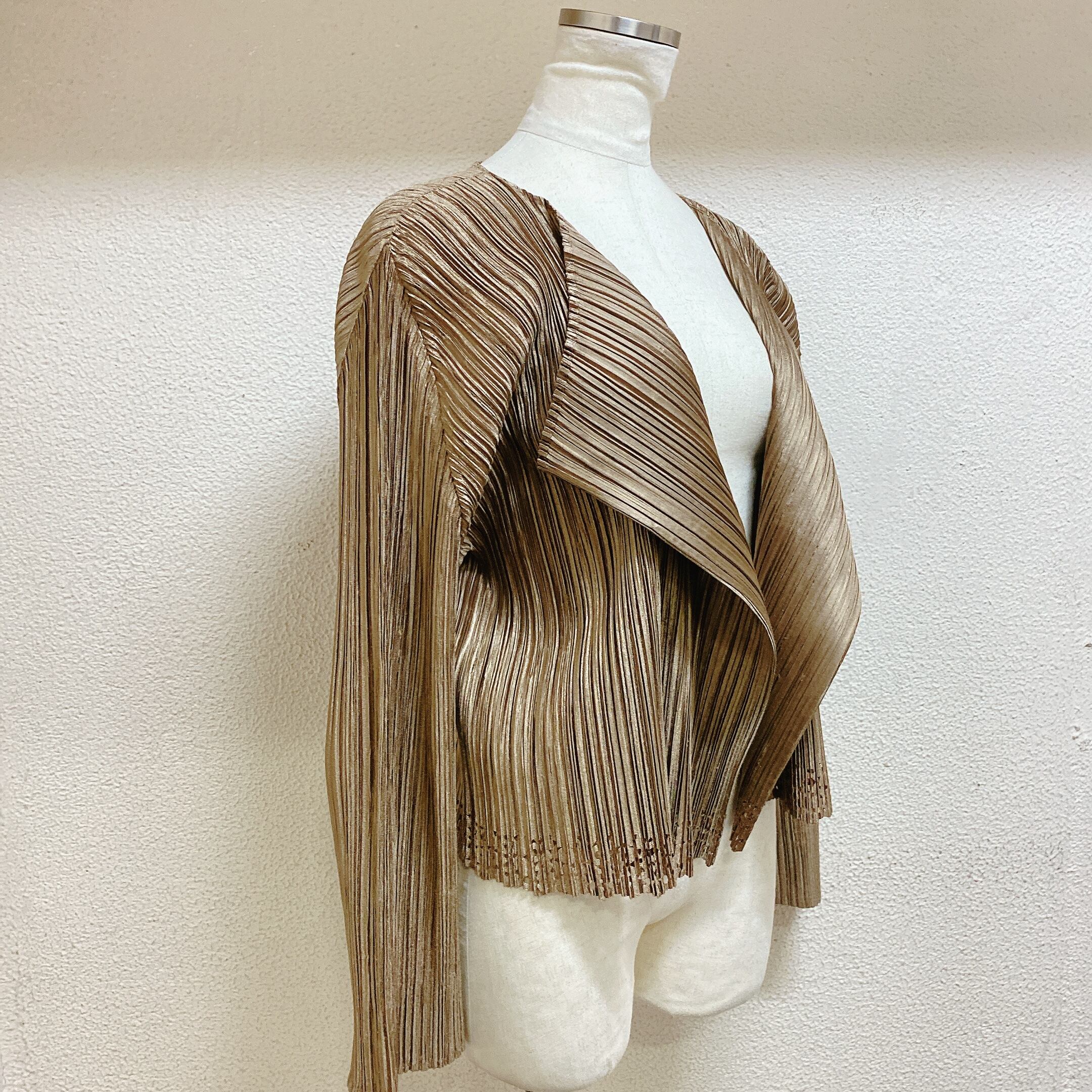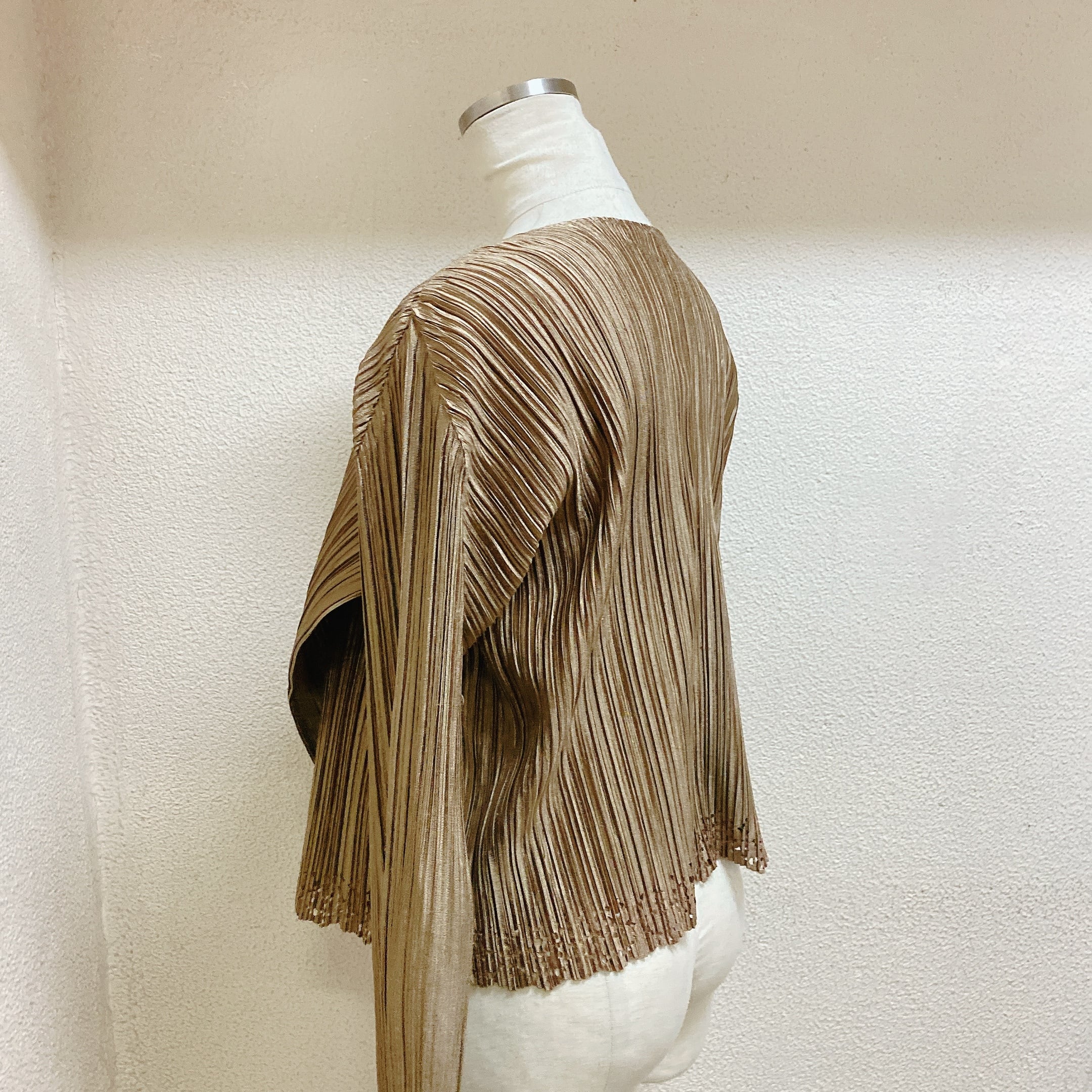 イッセイミヤケ プリーツプリーズ カーディガン ブロンズ色 ISSEY MIYAKE PLEATS PLEASE