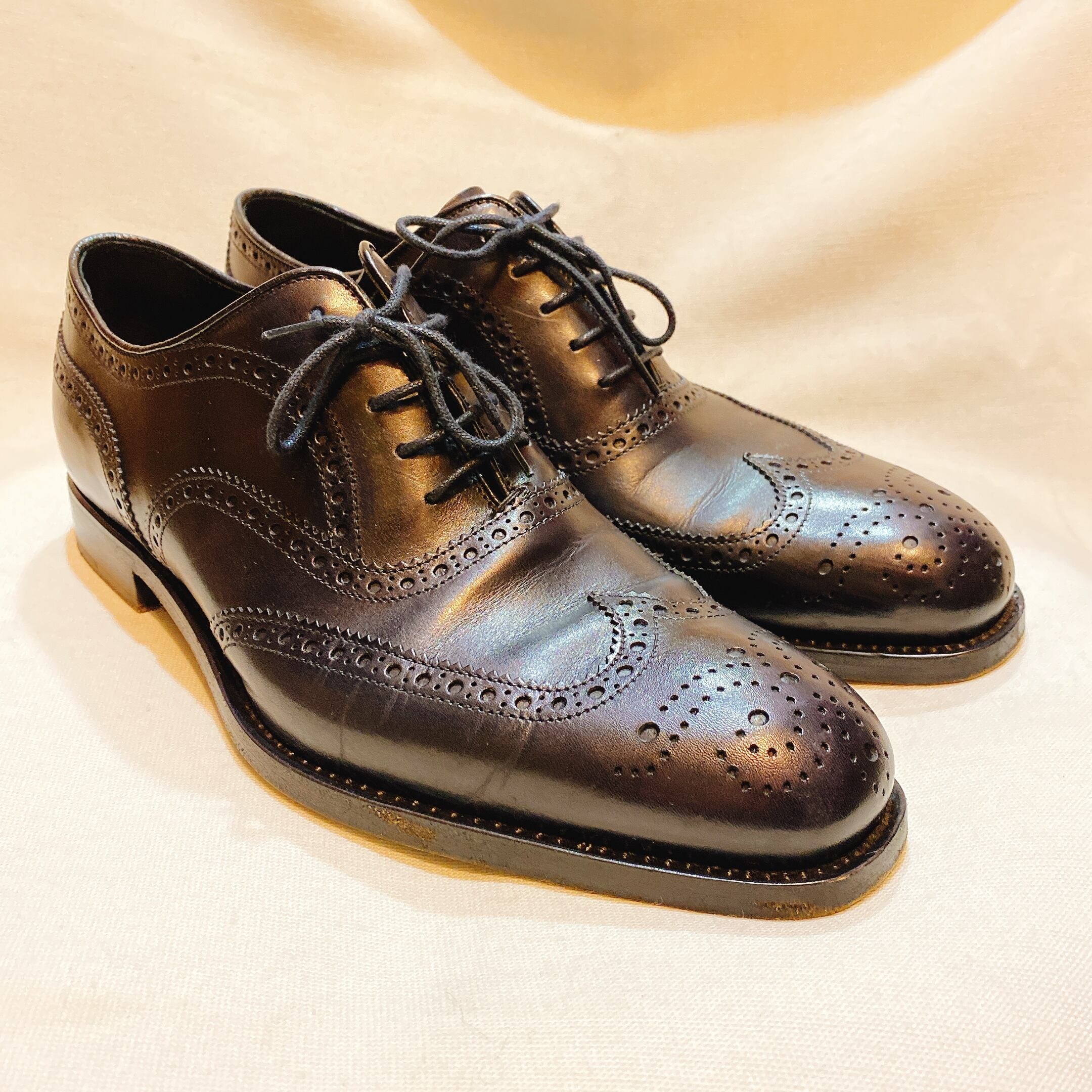 プラダ シューズ 黒 ウィングチップ PRADA 美品