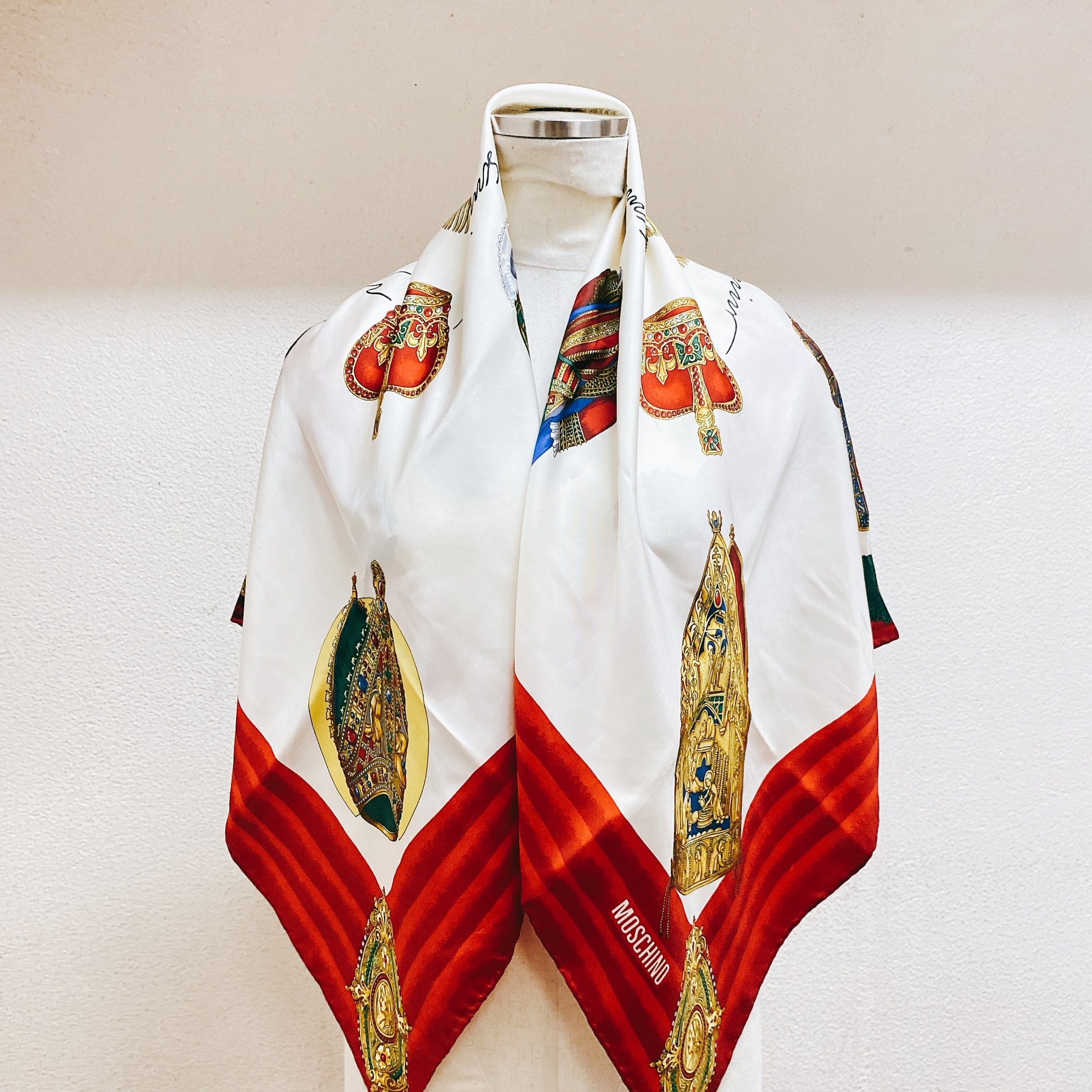 モスキーノ スカーフ 白赤色 シルク MOSCHINO