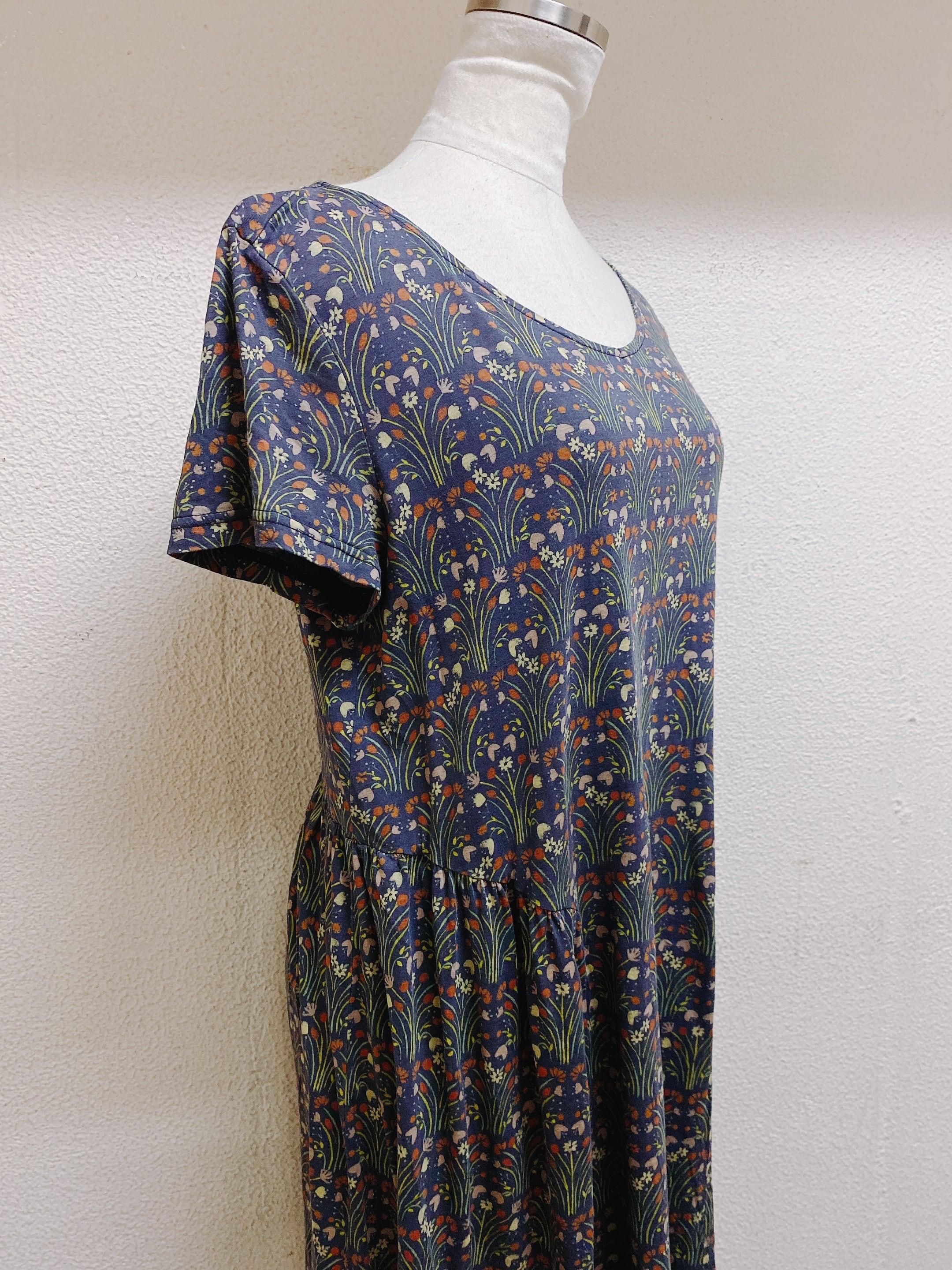 ホコモモラ 半袖ワンピース 紺グレー色 花柄 Jocomomola