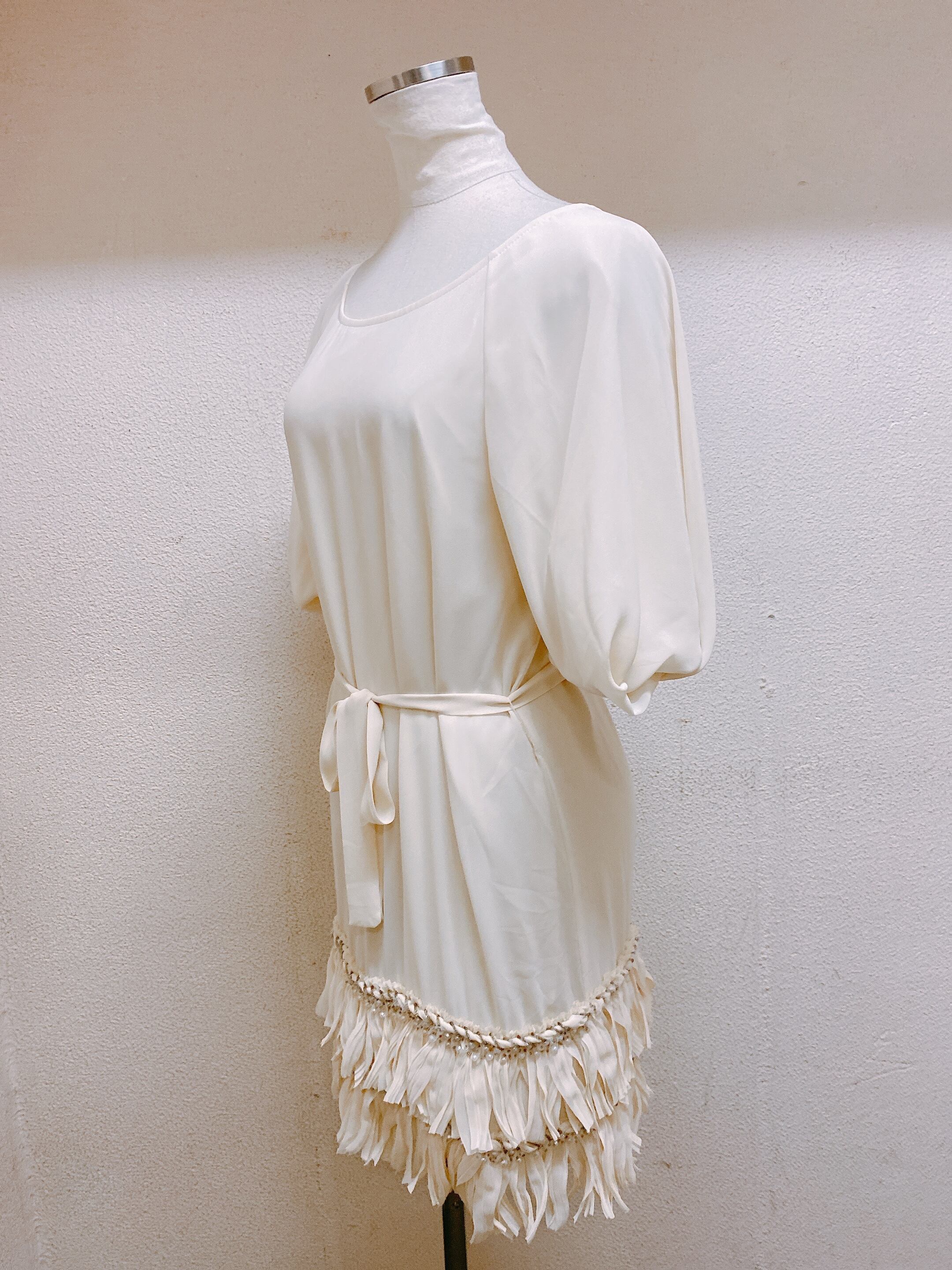 BCBG マックスアズリア 半袖ワンピース 白ベージュ シルク MAX AZRIA