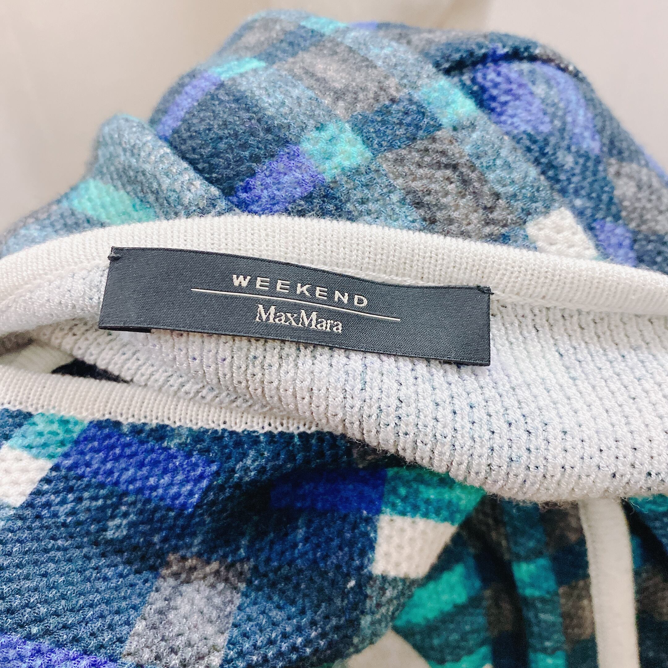 マックスマーラ カーディガン 青水色 チェック柄 Max Mara