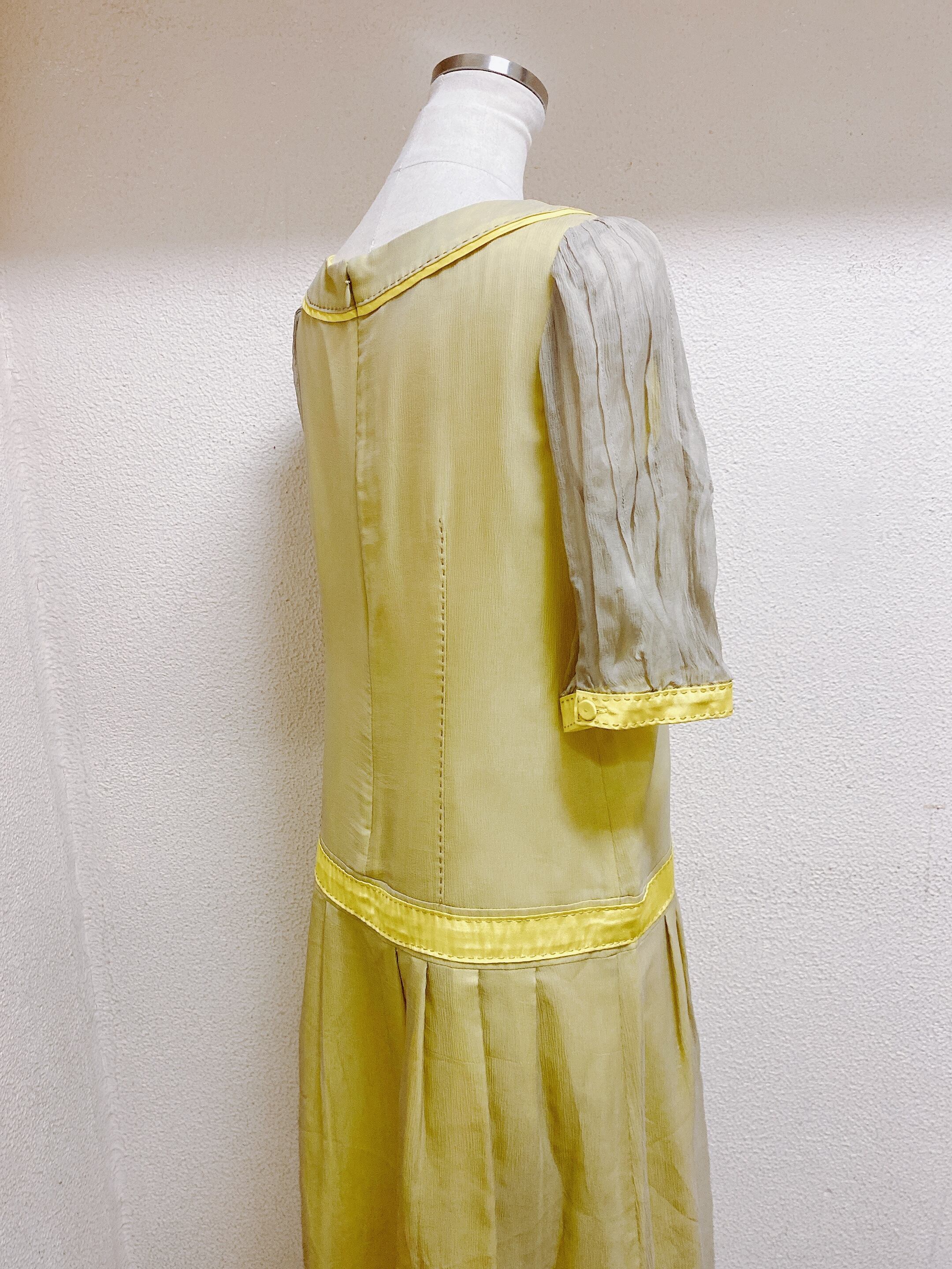 キャシャレル 半袖ワンピース 黄緑色 シルク cacharel