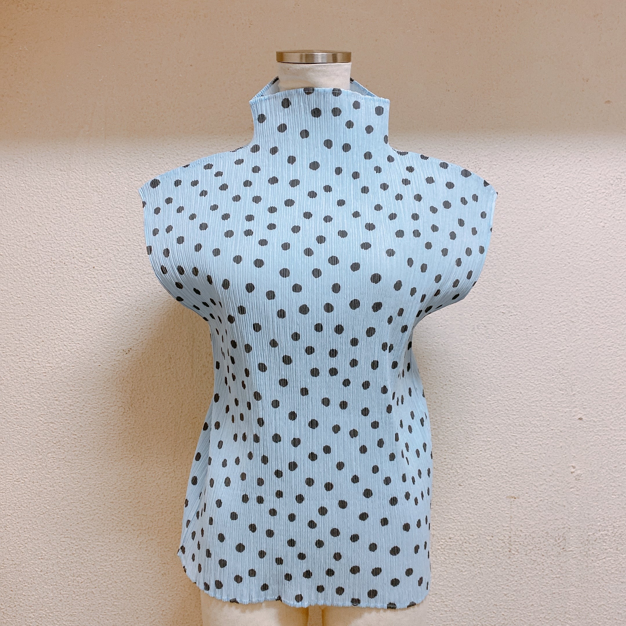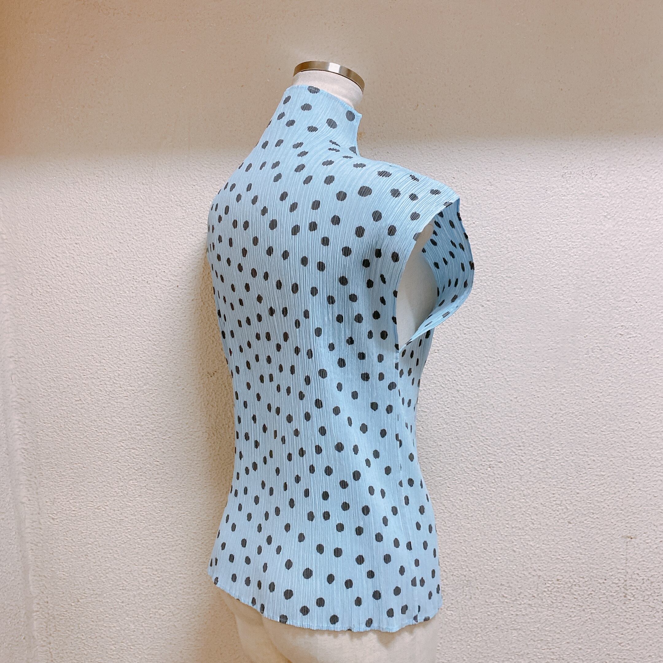 イッセイミヤケ プリーツトップス 水色 ドット柄 ISSEY MIYAKE PLEATS PLEASE