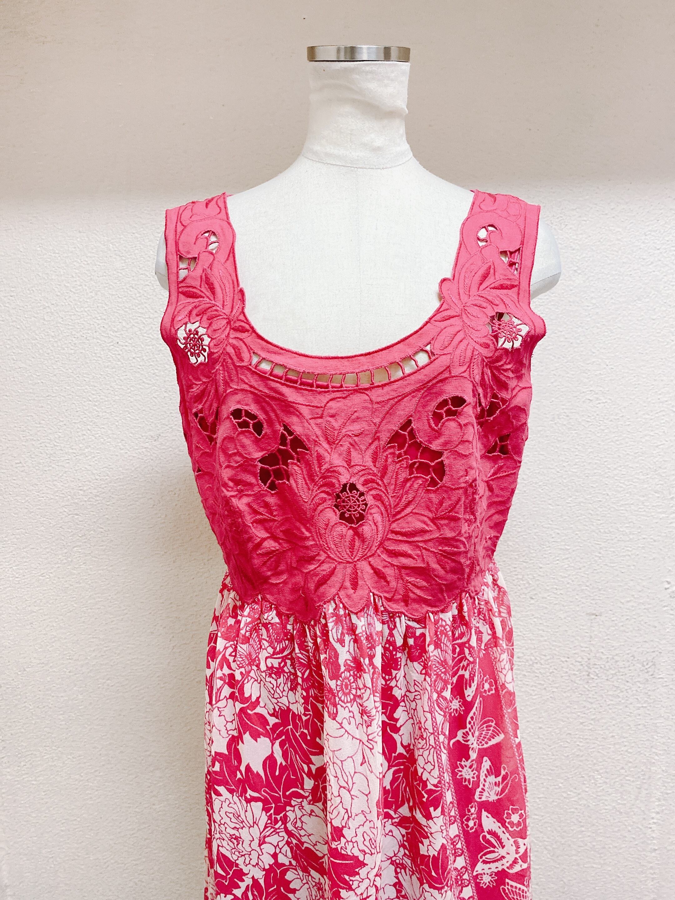 ヴィヴィアンタム ノースリーブワンピース ピンク 花柄 VIVIENNE TAM