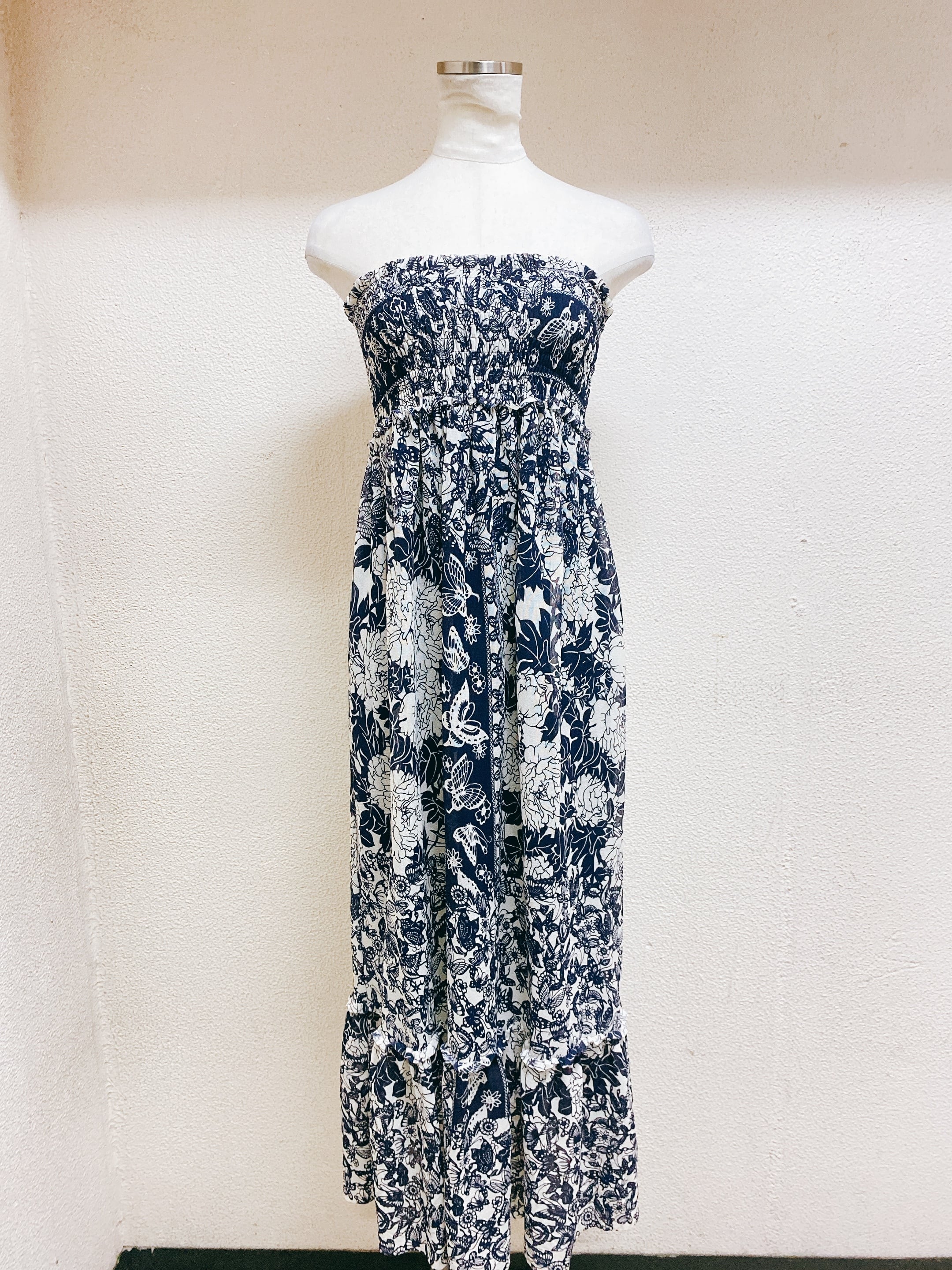 ヴィヴィアンタム ノースリーブワンピース 白紺 花柄 チューブトップ VIVIENNE TAM