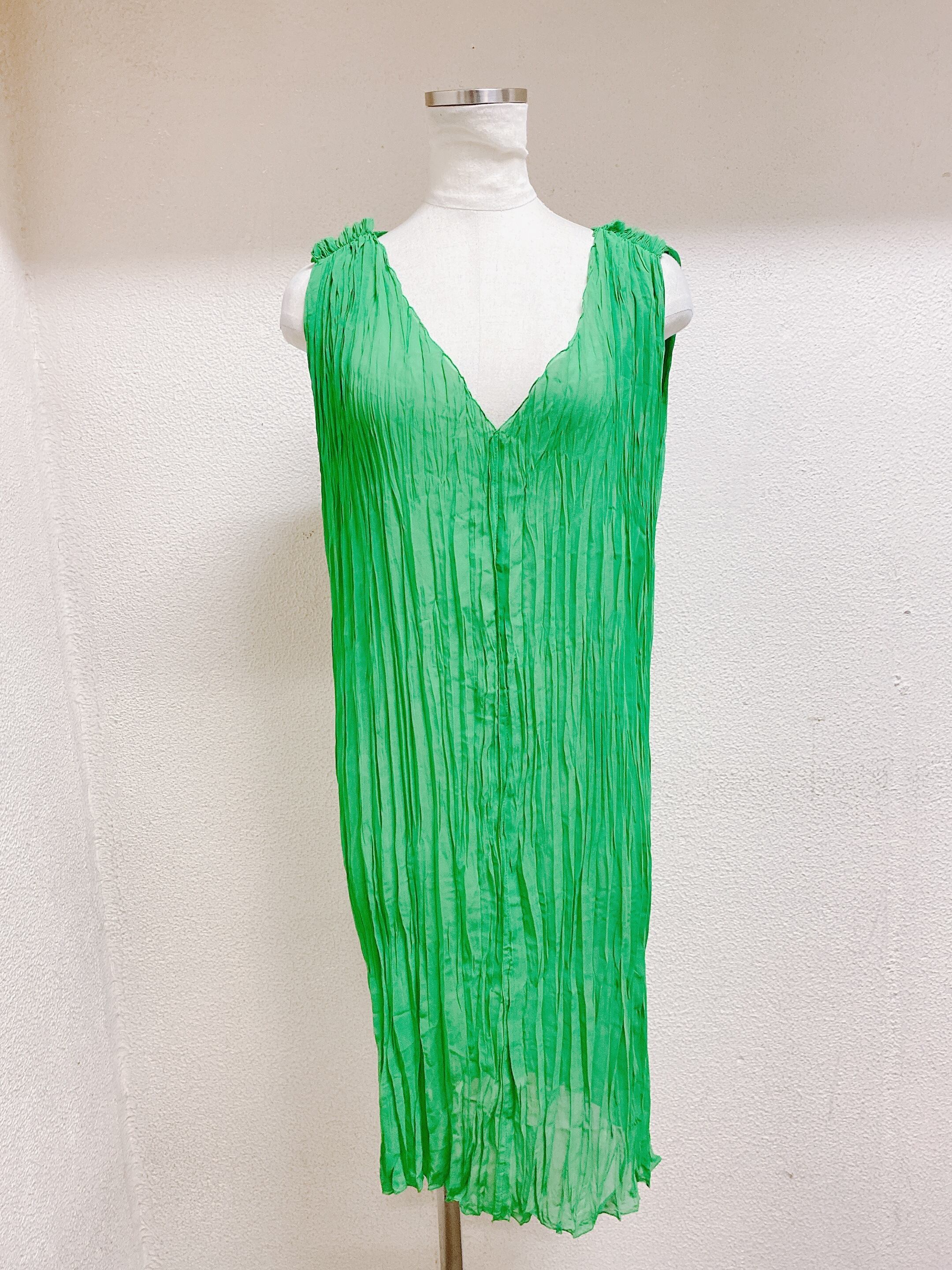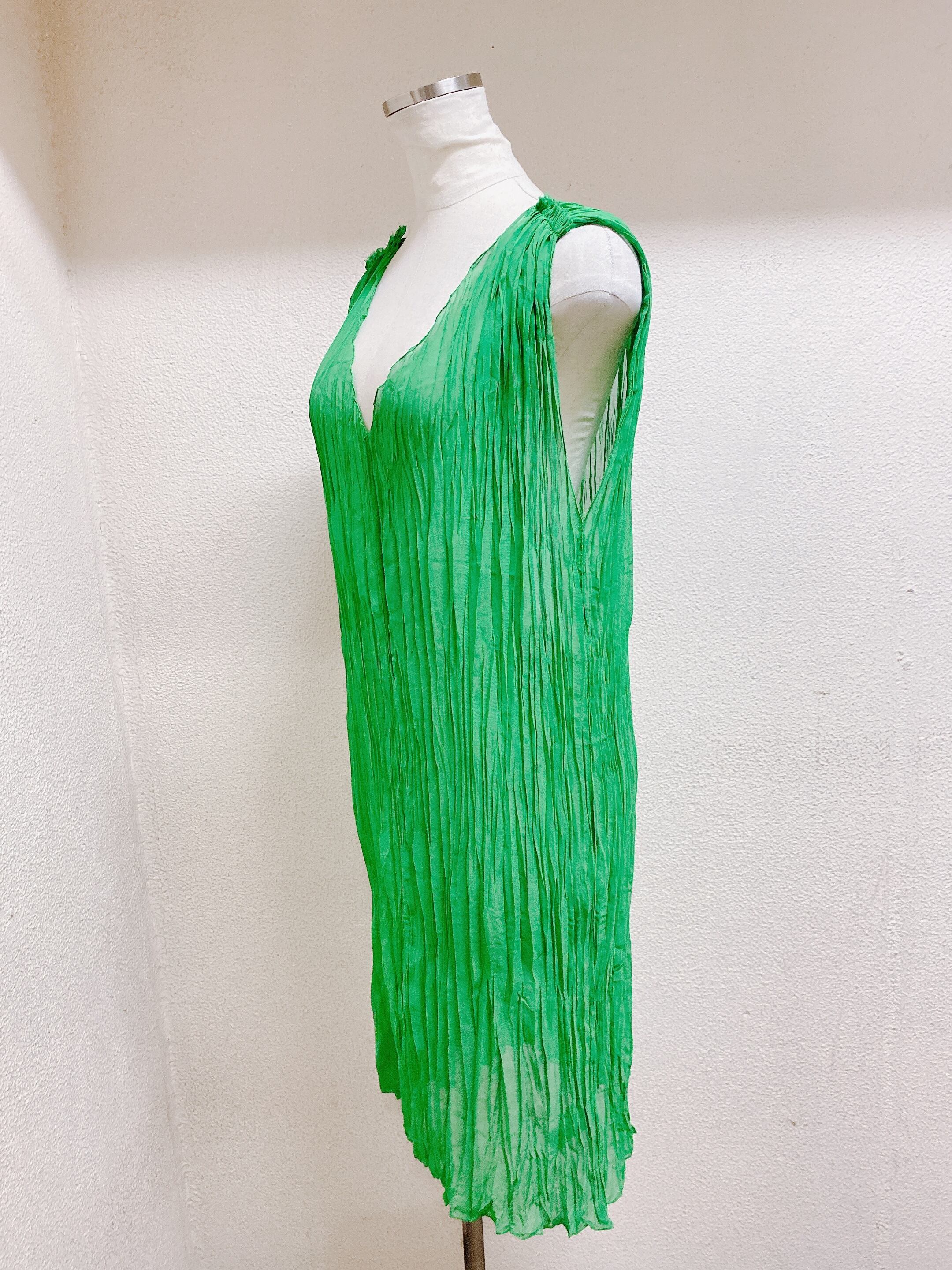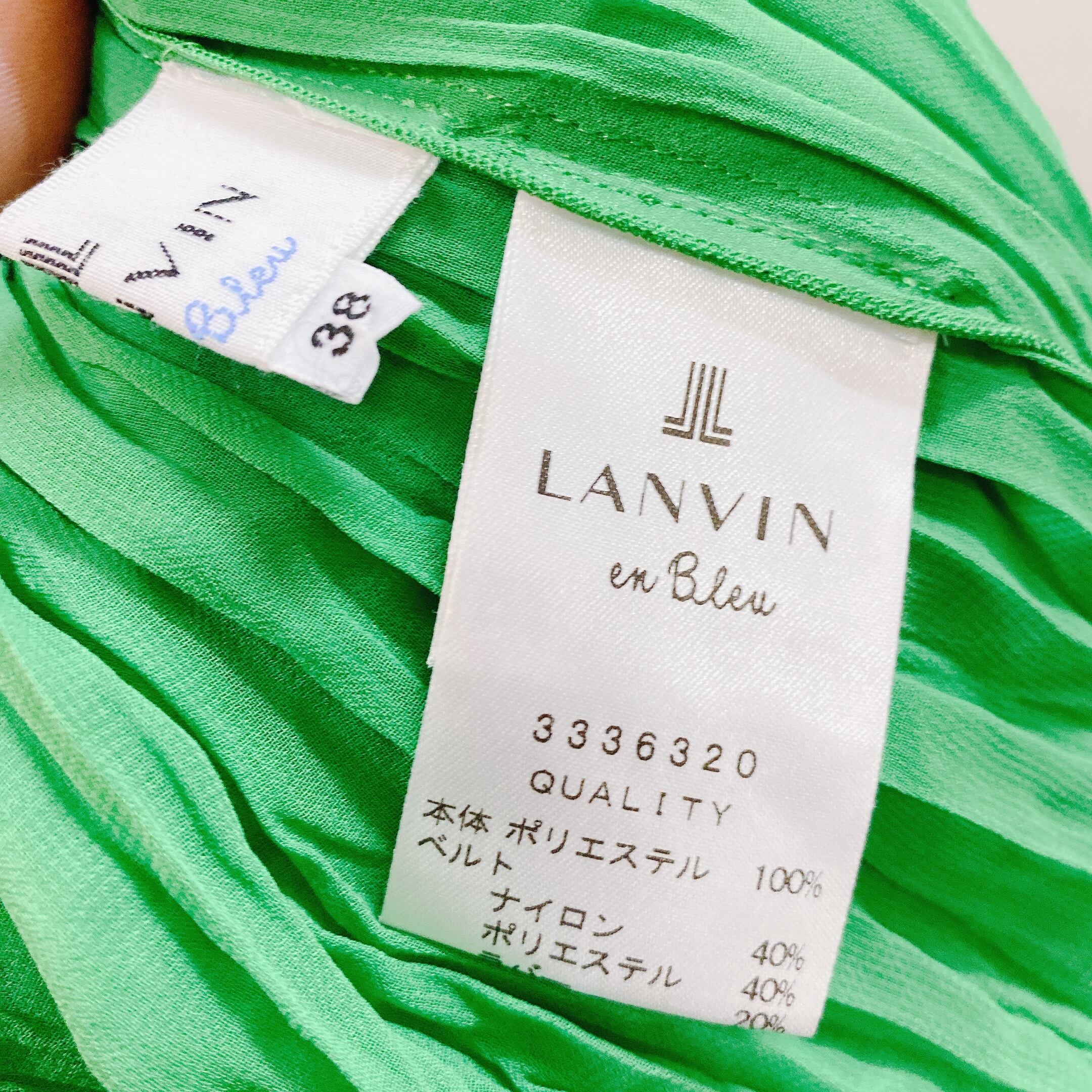 ランバン ノースリーブワンピース 緑色 プリーツワンピース LANVIN