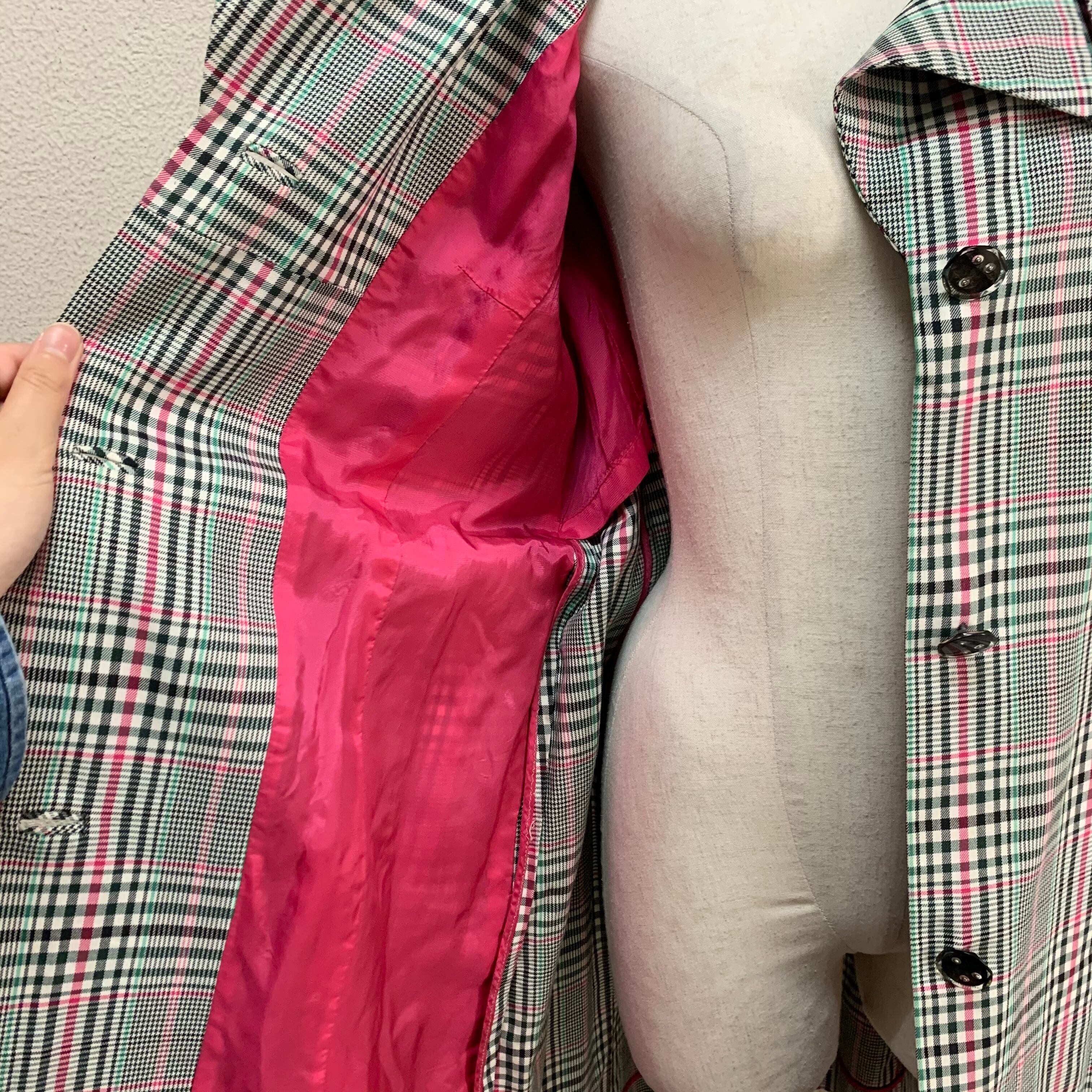 グレー×グリーン×ピンクのチェック柄が素敵です!薄手のコートですので春にぴったり◎