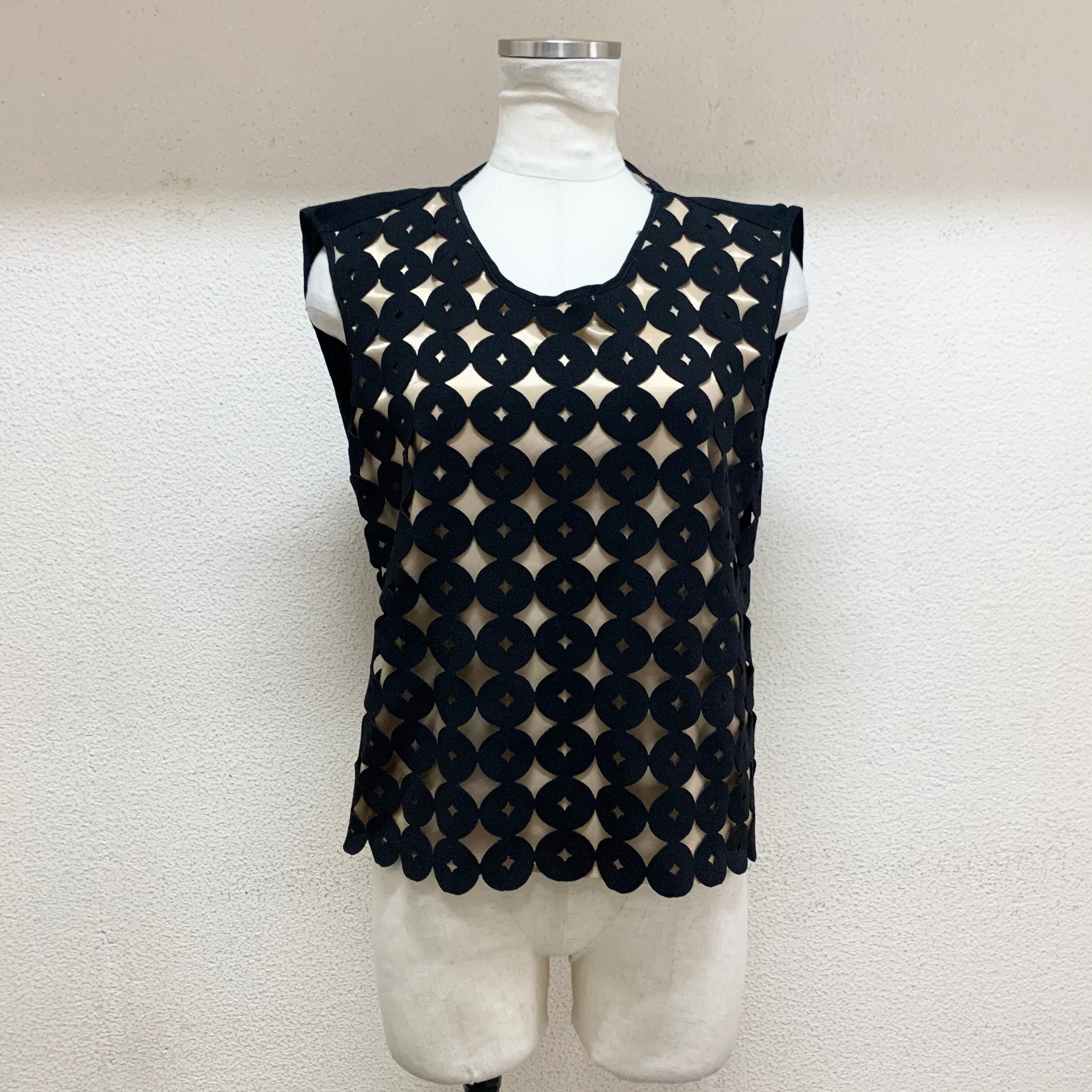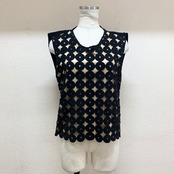 vintage/tops/black/ノースリーブ/トップス/柄/リボン/黒色/ベージュ