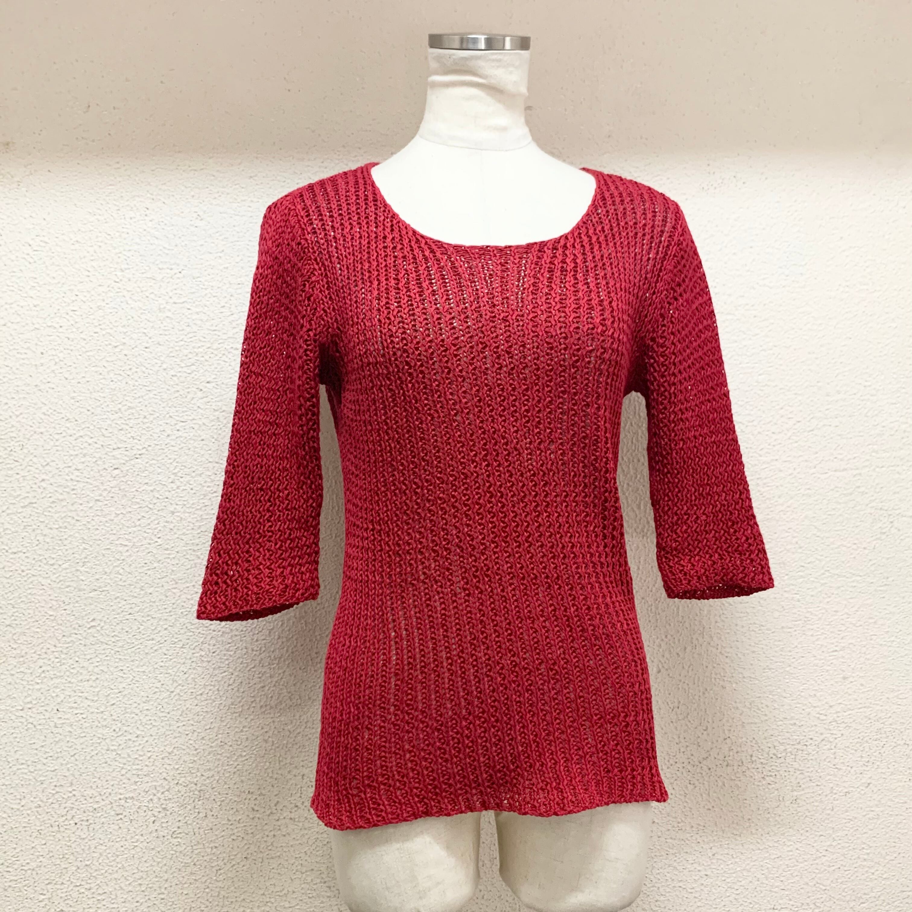 DKNY/tops/red/ダナキャラン/七分袖トップス/透かし編み/赤色