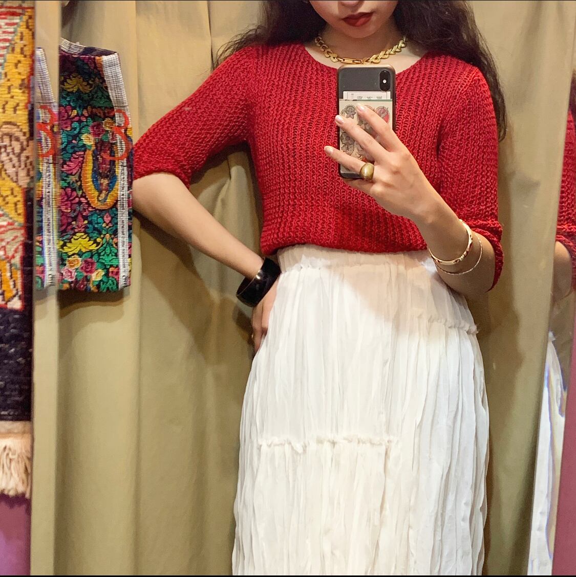 お色は赤色で、透かし編みデザインが夏らしく涼しげでオススメです◎