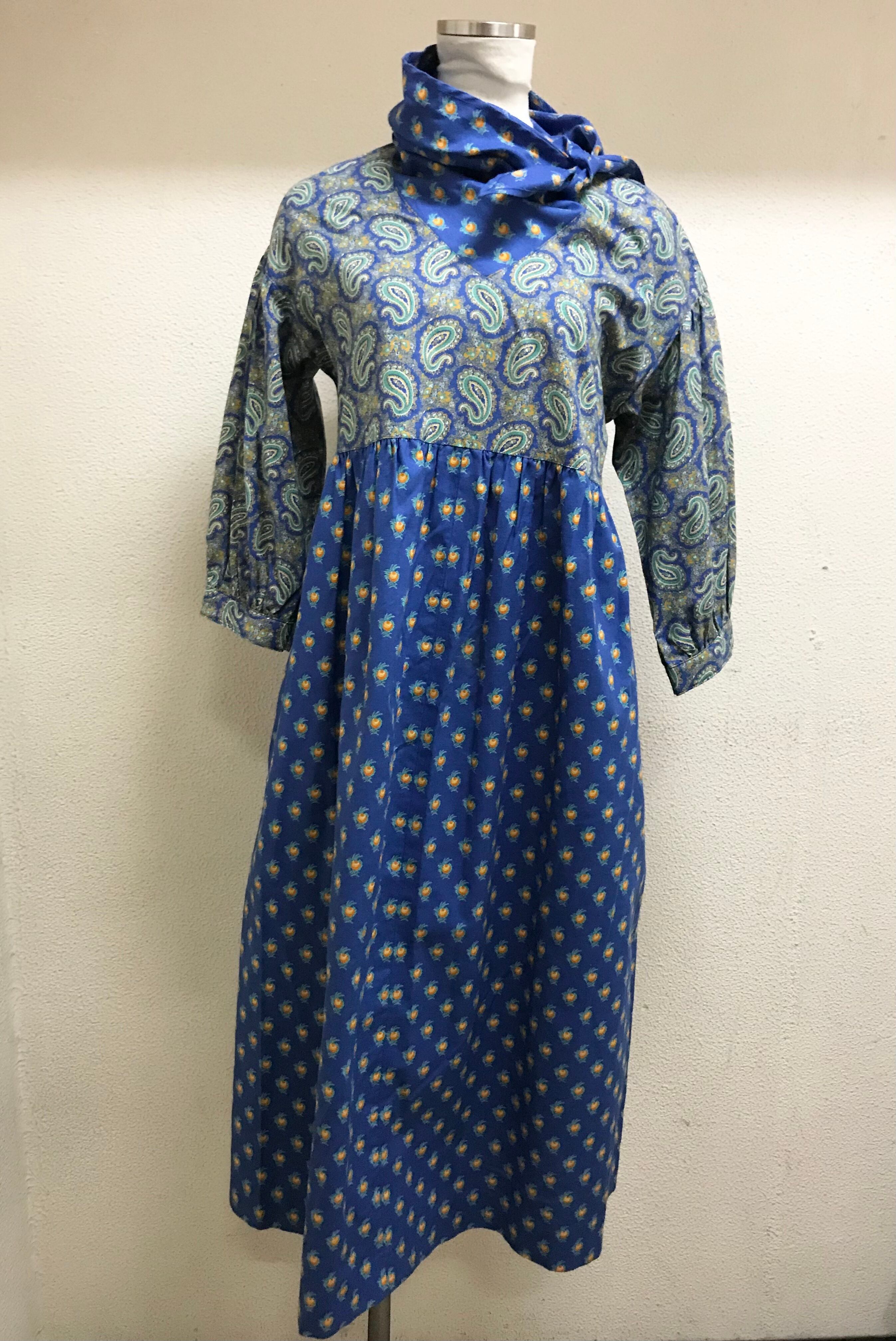 vintage スカーフ襟 ワンピース 七分袖
