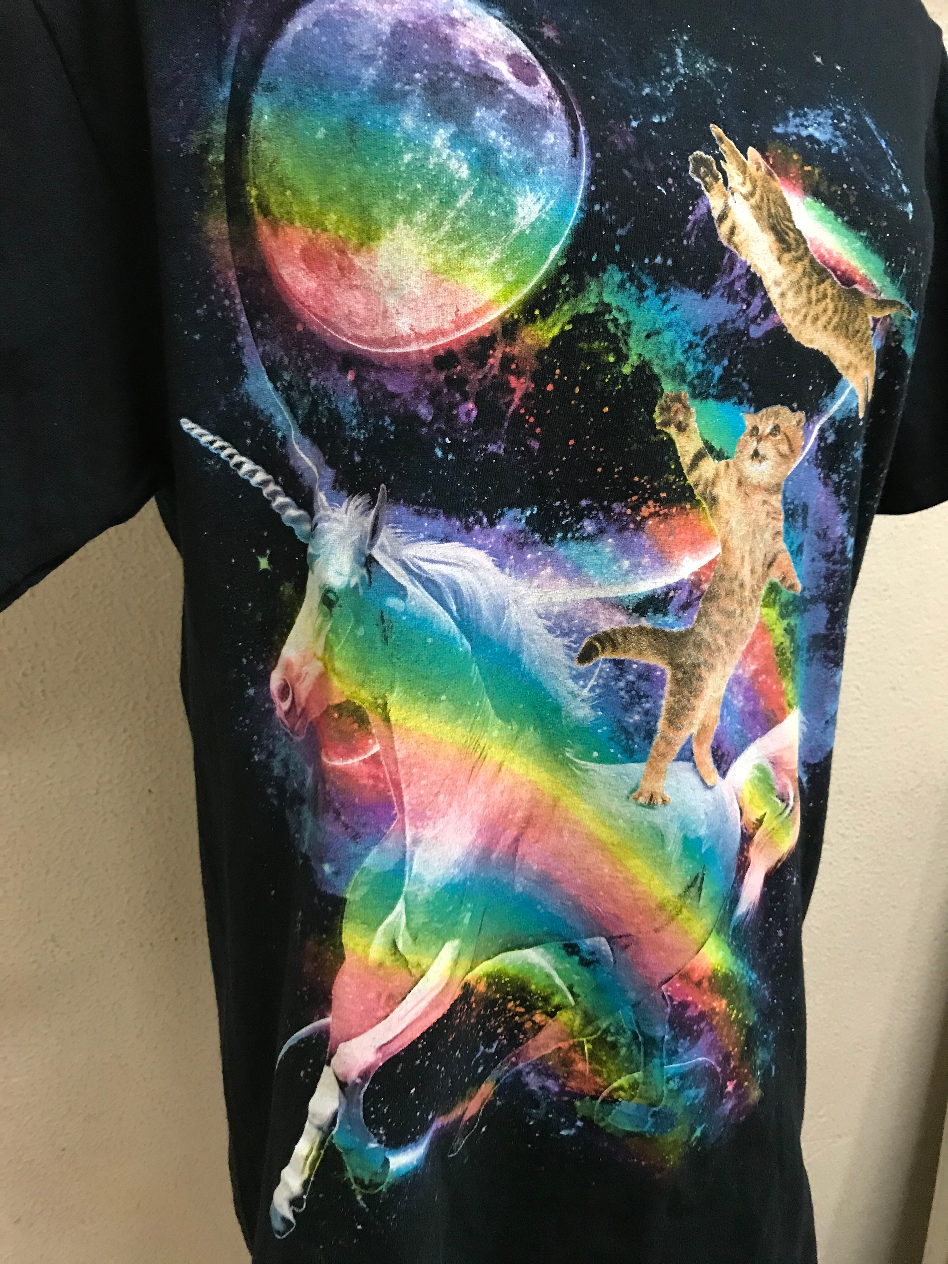 vintage Tシャツ 猫 ユニコーン オーロラ レインボー