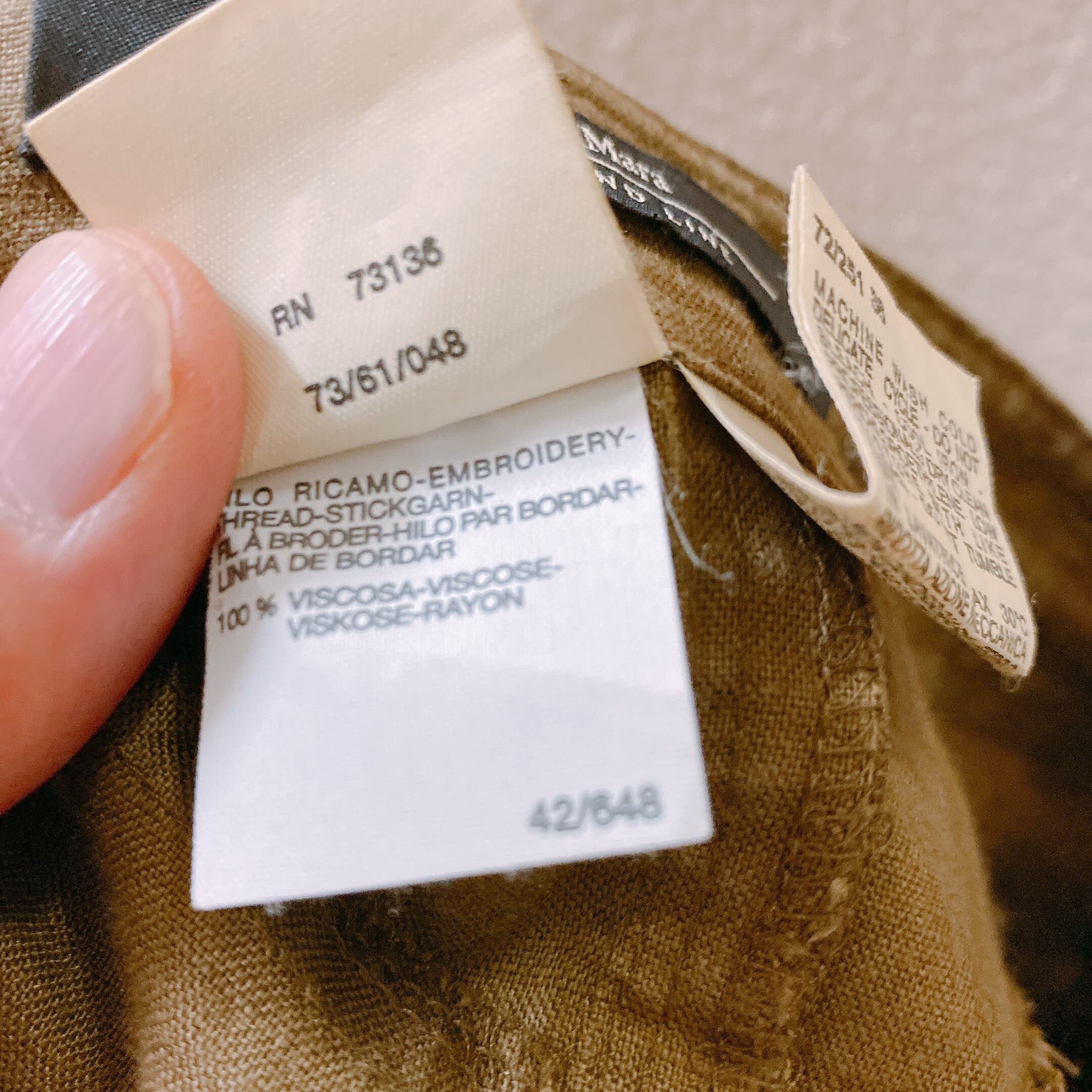 マックスマーラのスカートです。色はカーキ色です。花柄刺繍が施されたデザインです。