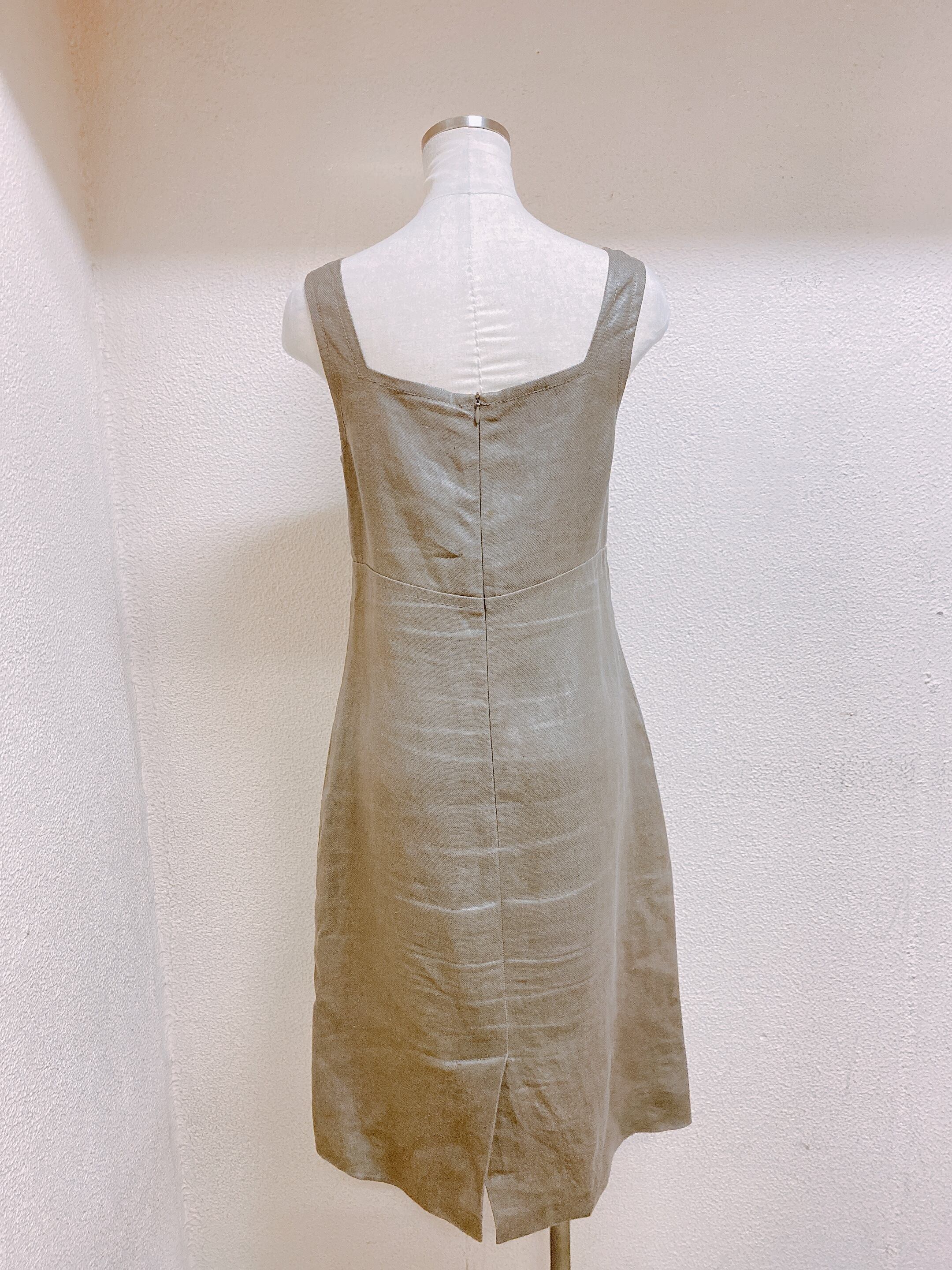 マックスマーラ ノースリーブワンピース カーキ 麻 Max Mara