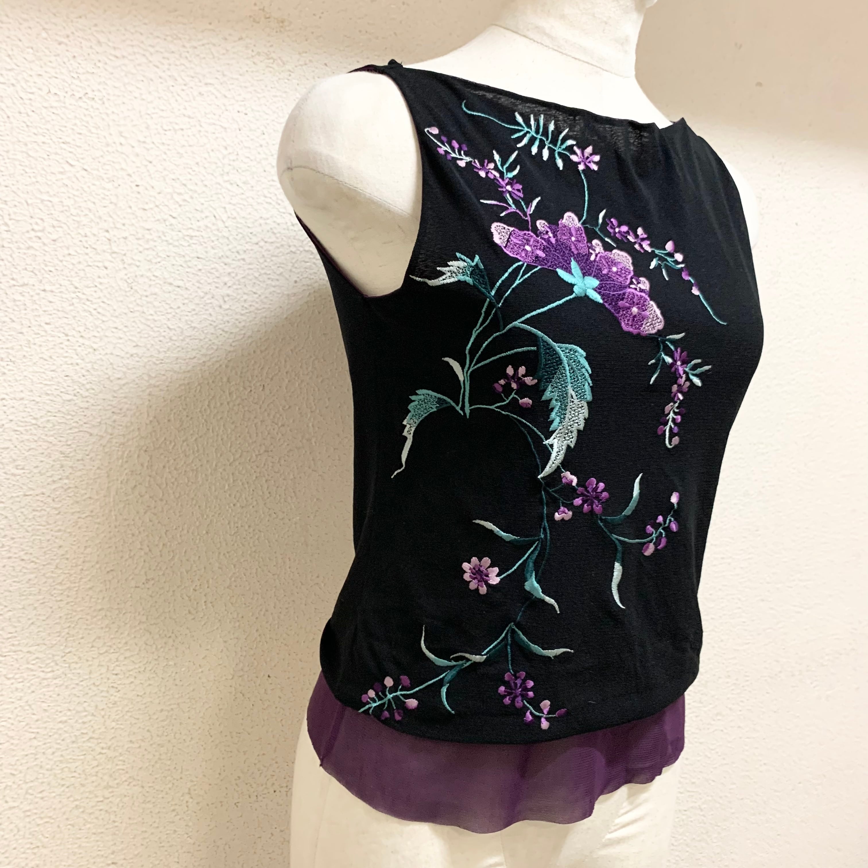 VIVIENNE TAM/tops/ヴィヴィアンタム/ノースリーブ/トップス/お花/刺繍/紫色/黒色