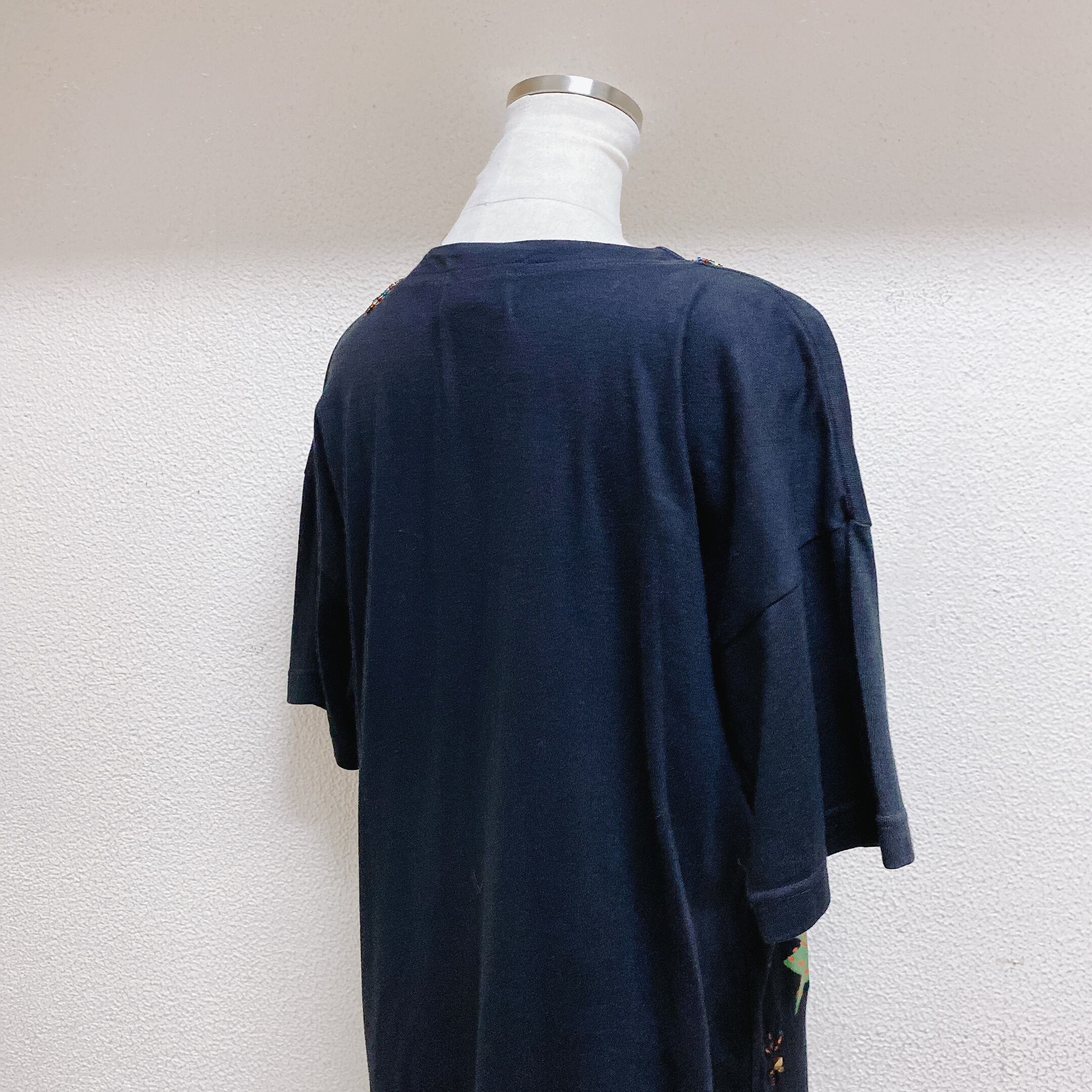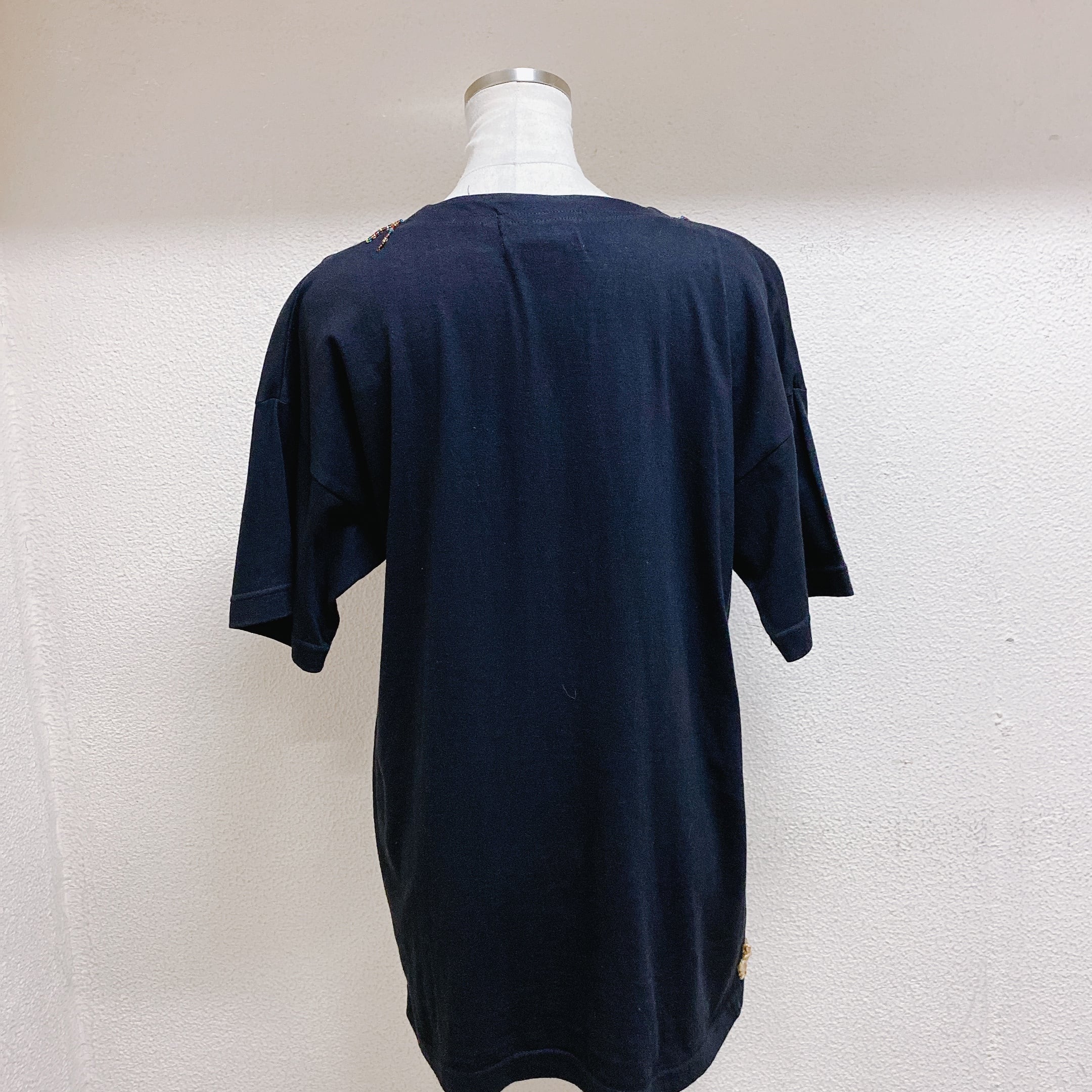 vintage 半袖Tシャツ 黒 ビーズ used 象柄