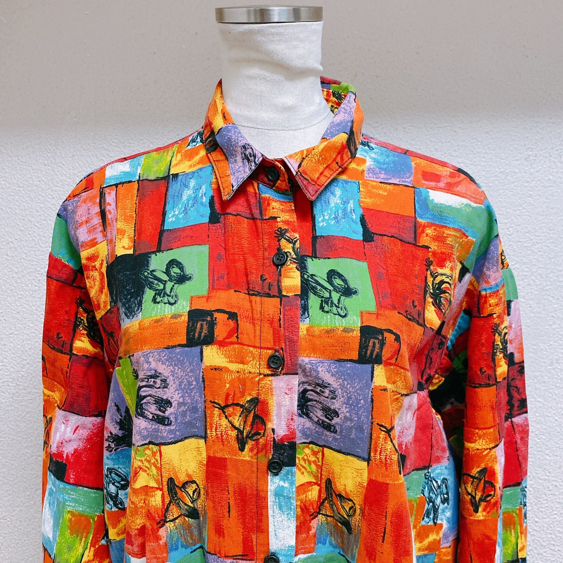 vintage longsleeve shirt 長袖シャツ 赤 オレンジ used アメリカ製