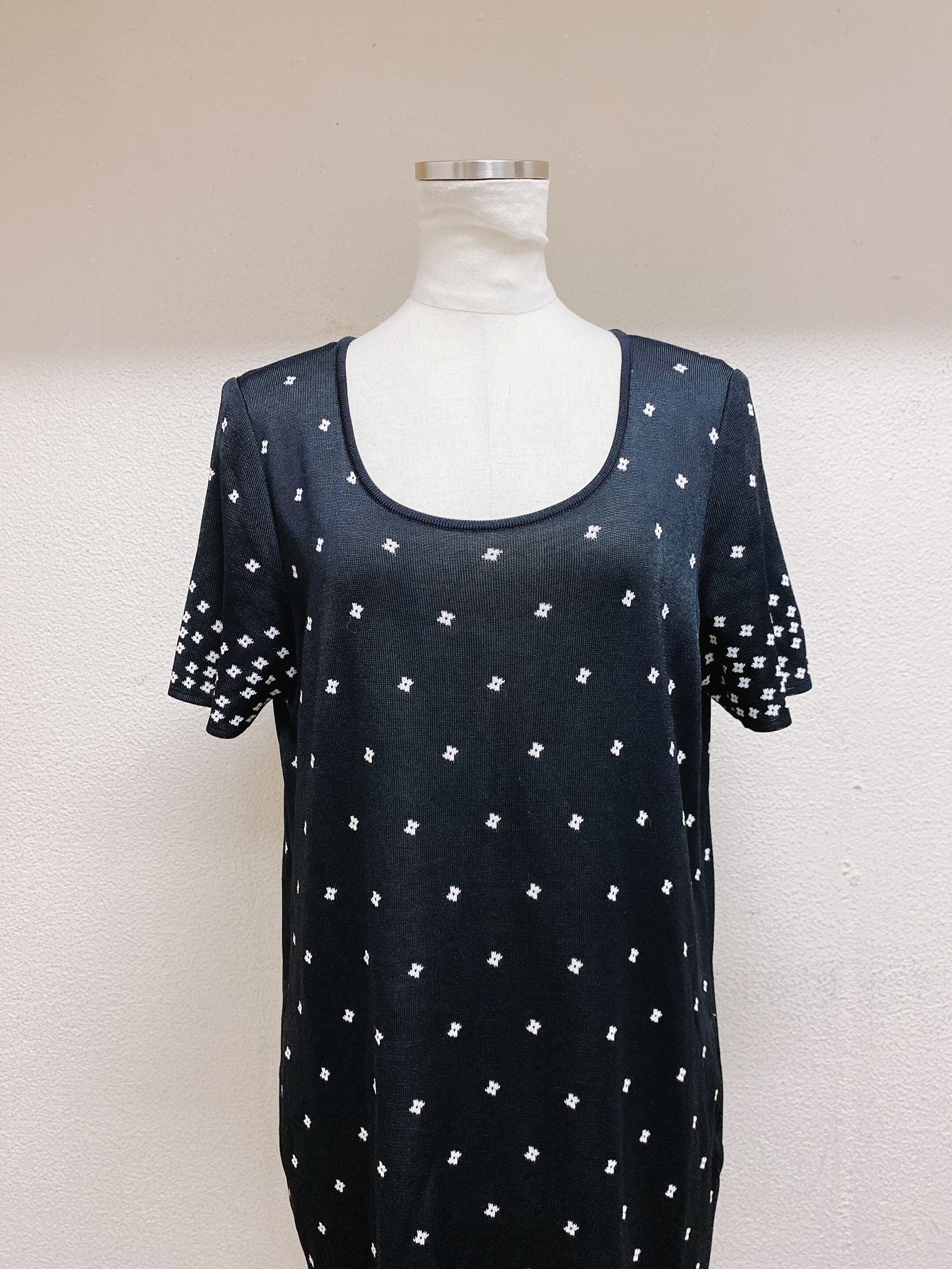 ● サイズ・42 肩幅約40センチ、袖丈約22センチ、身幅約48センチ、ウエスト約90センチ、ヒップ約102センチ、身丈約90センチ