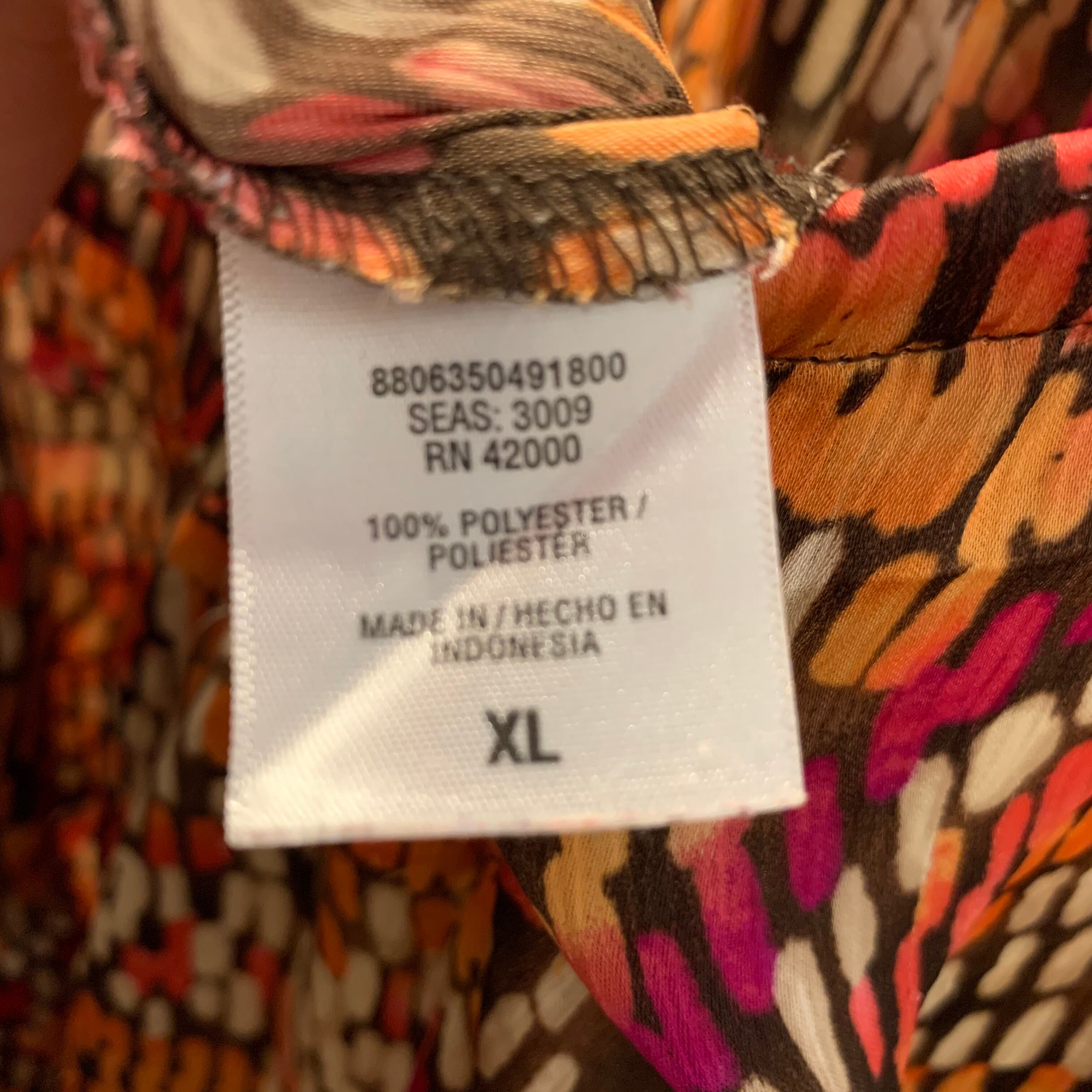 ピンク色.オレンジ色.白色.茶色が混ざり合って派手で可愛い柄がとても印象的な一着です!