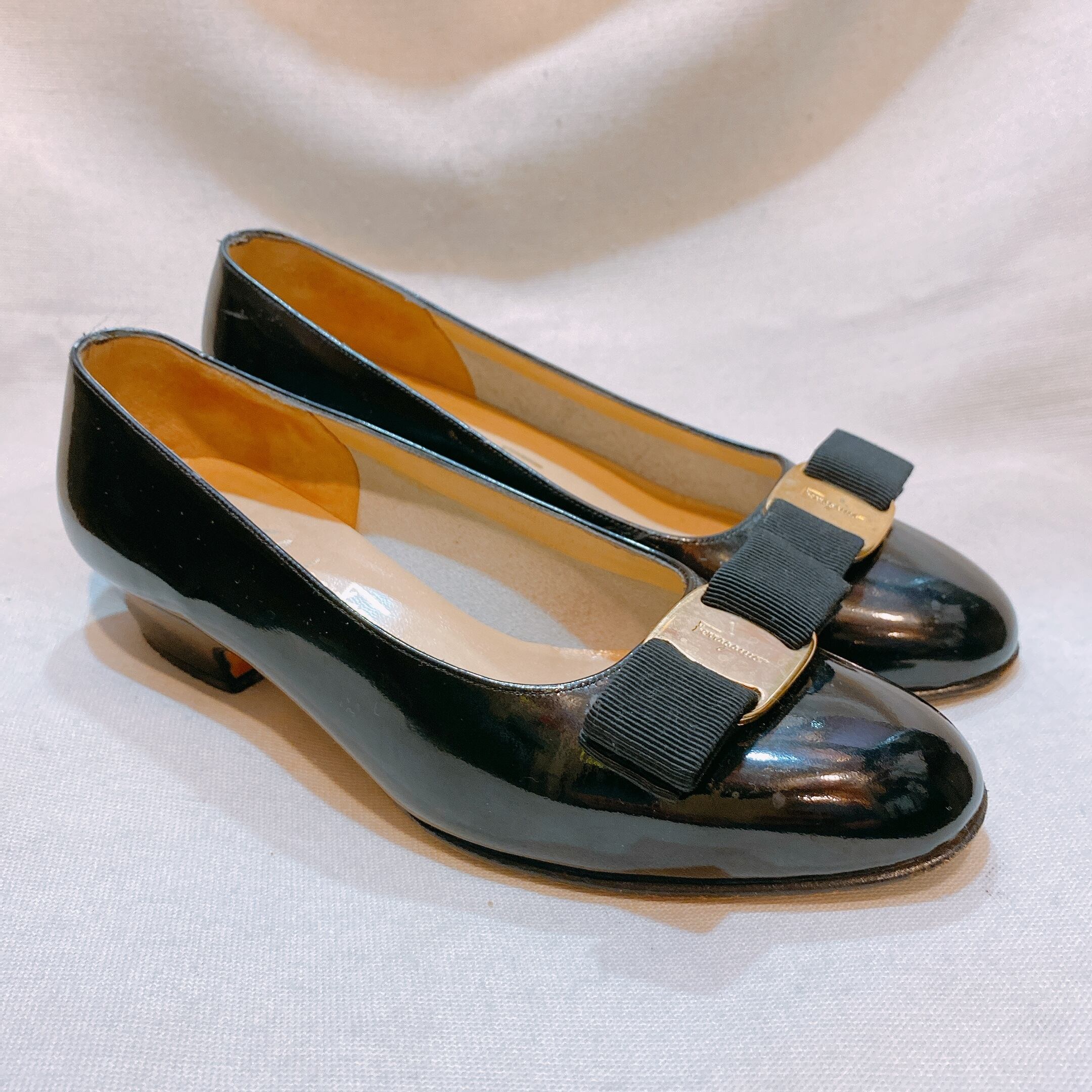 フェラガモ フラットシューズ 黒 エナメル Salvatore Ferragamo